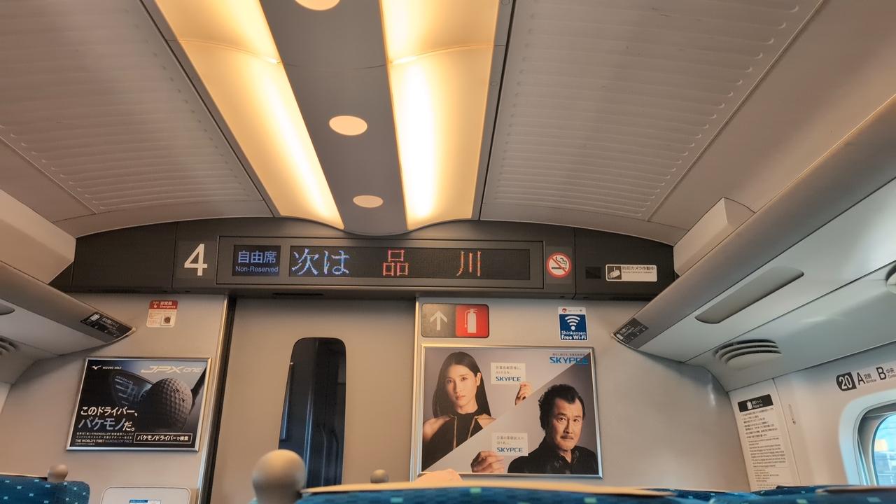 ほどなくして乗車が出来るようになったので、早々に車内に入ります。今回はN700Sの運用だったようで、車内案内表示装置は液晶式です。