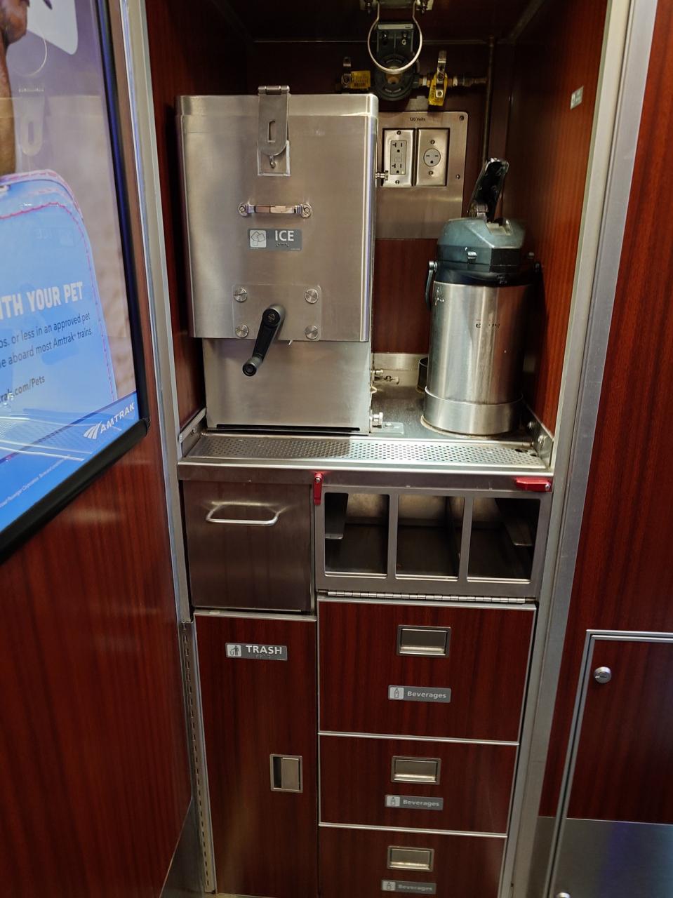 各車両についている左が製氷と右側はコーヒー、朝にコーヒーは少しいただきました。