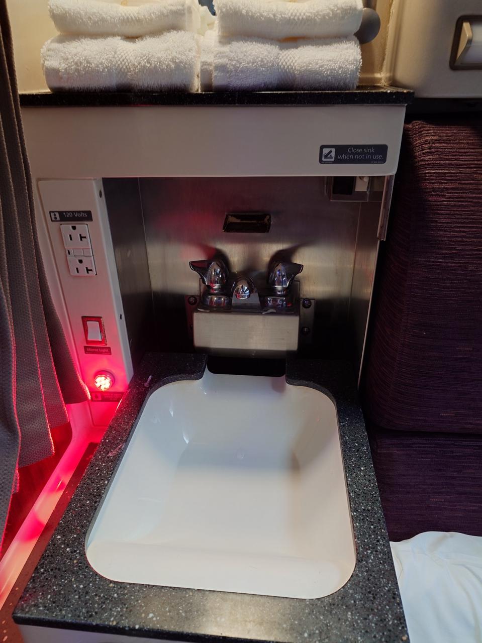 ちょうど駅到着なので シャワーを浴びに行ってみました。全く使えません(笑)湯量は ちょろちょろ、完全に水のまま。5分ぐらいは待ちましたが 全く変わりません。仮に熱湯になってもこれでは風邪引くレベルなので服を着たまま顔だけ洗いました。自分の部屋の洗面台の荷物 どかすよりは よっぽどマシかなと!これからまた14時間以上あり、外も真っ暗なので もう1回寝ます。