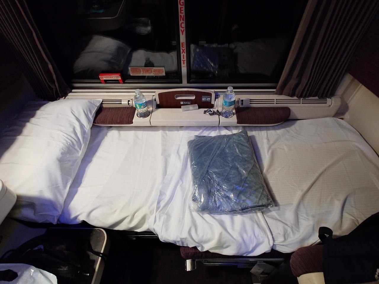 2段ベッドの完成形です、おそらく 夜中に乗る人用に車掌がセットアップしたのだと思います。