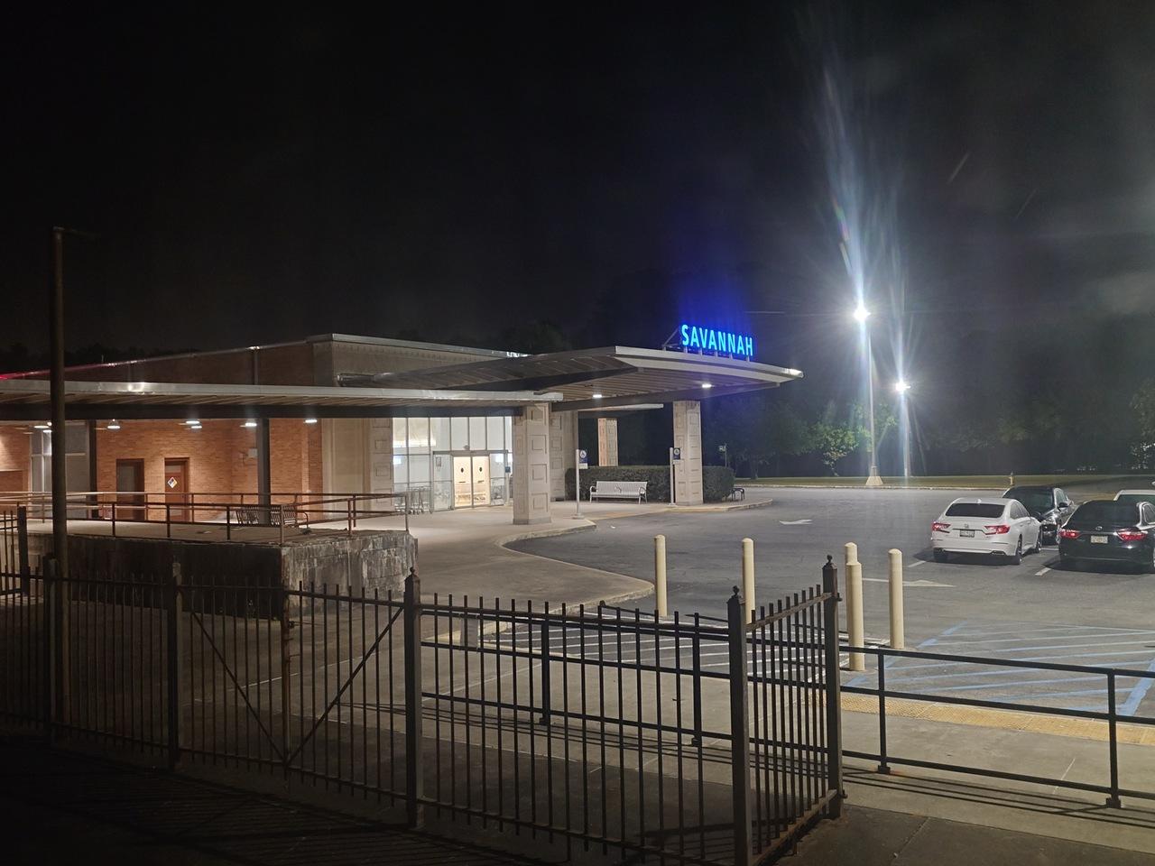 サバンナ 駅に到着、朝の4時です。定刻だ!!と思ったら40分停車…40分も何してんだ!!
