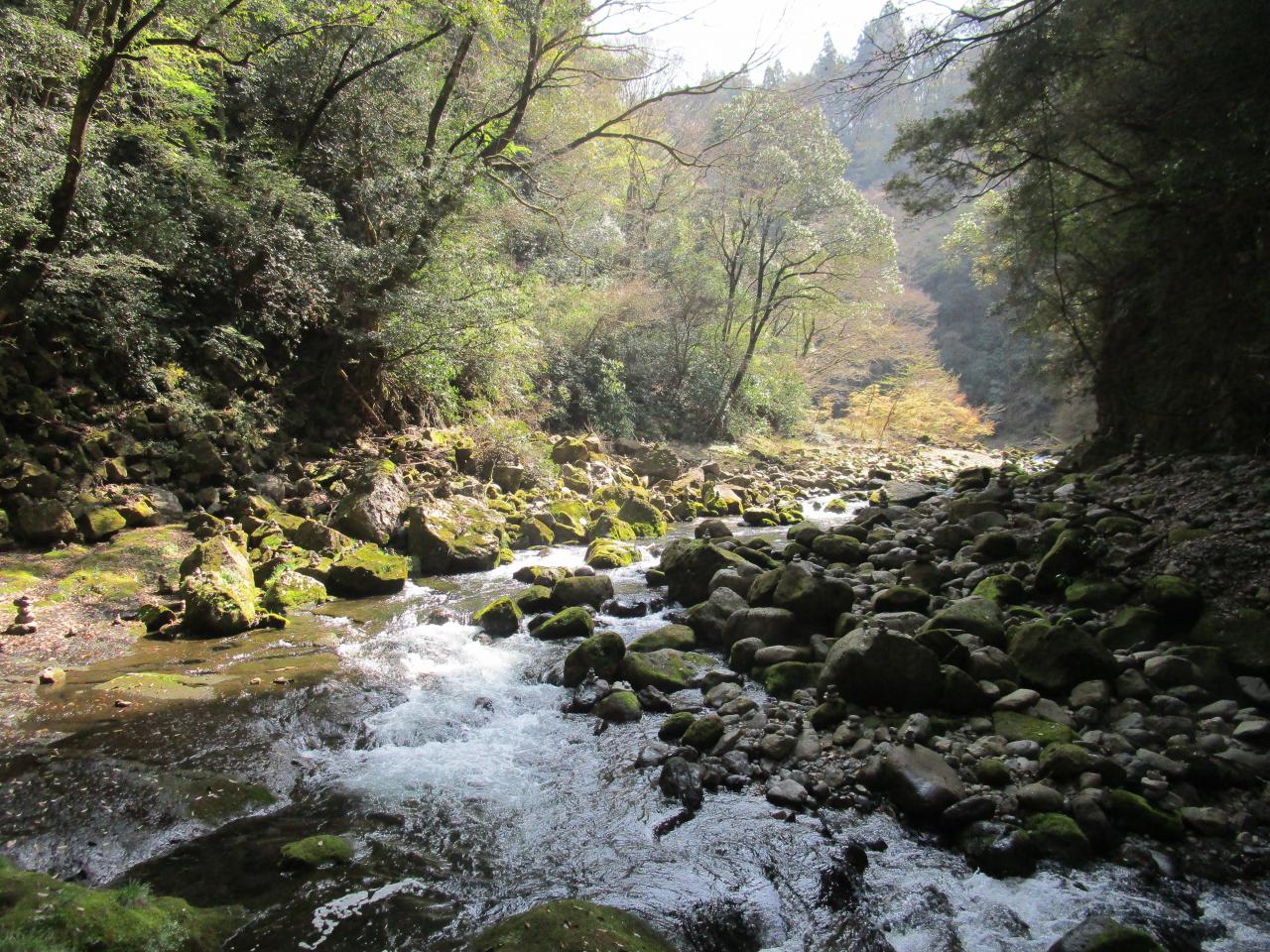 美しい渓流を見ながら坂道を下り(そして帰りは上り坂・・・ううう)、天安河原に到着。