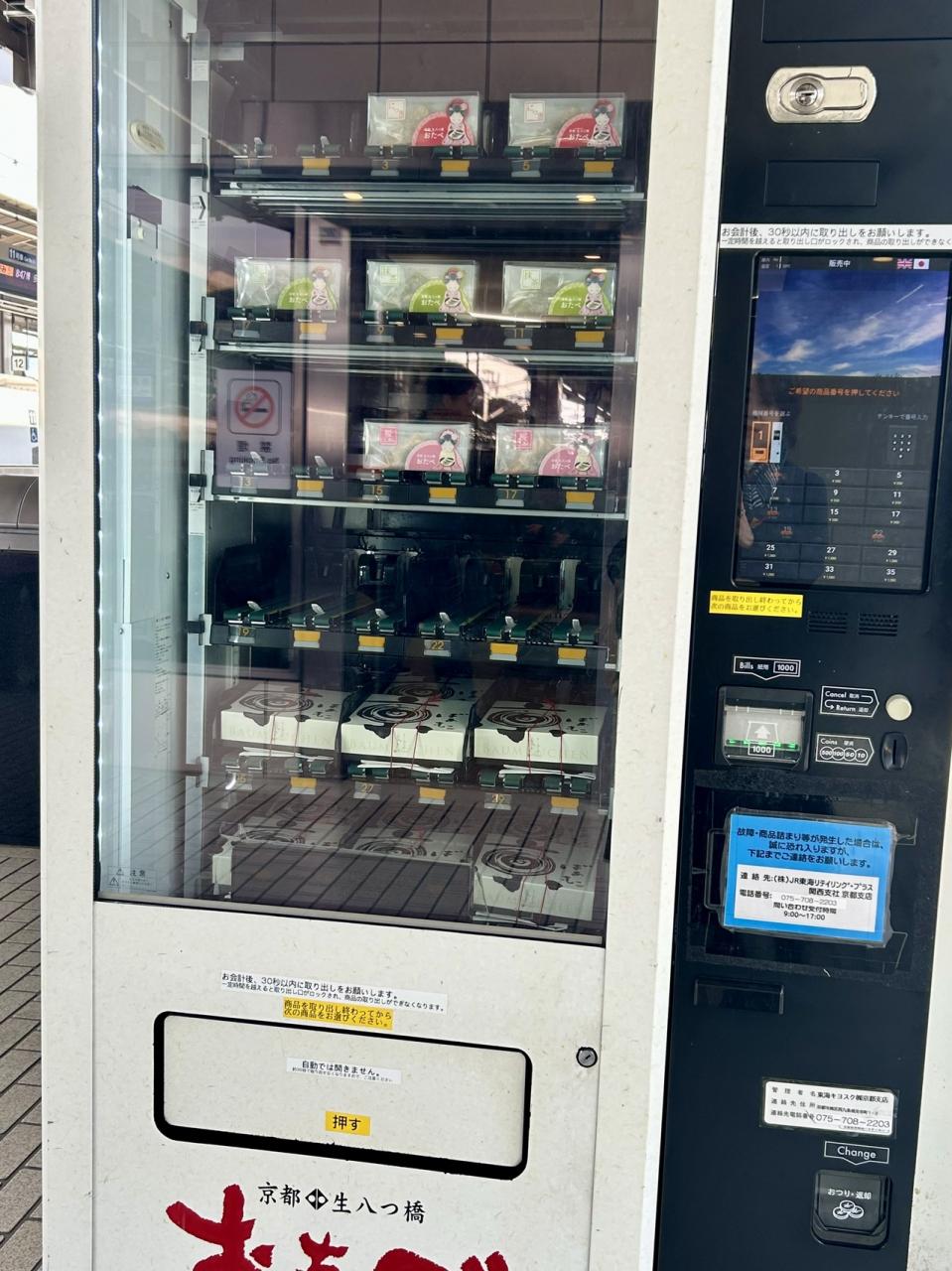 長蛇の列の売店に並ばなくても八ツ橋の自販機がある京都駅、すごいわ。