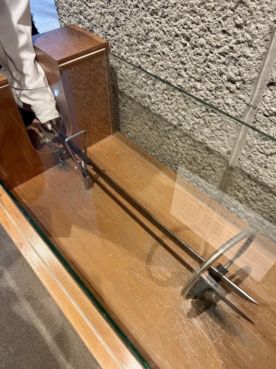 チケット売り場の前には触って持ち上げてもいい刀が置いてあります!