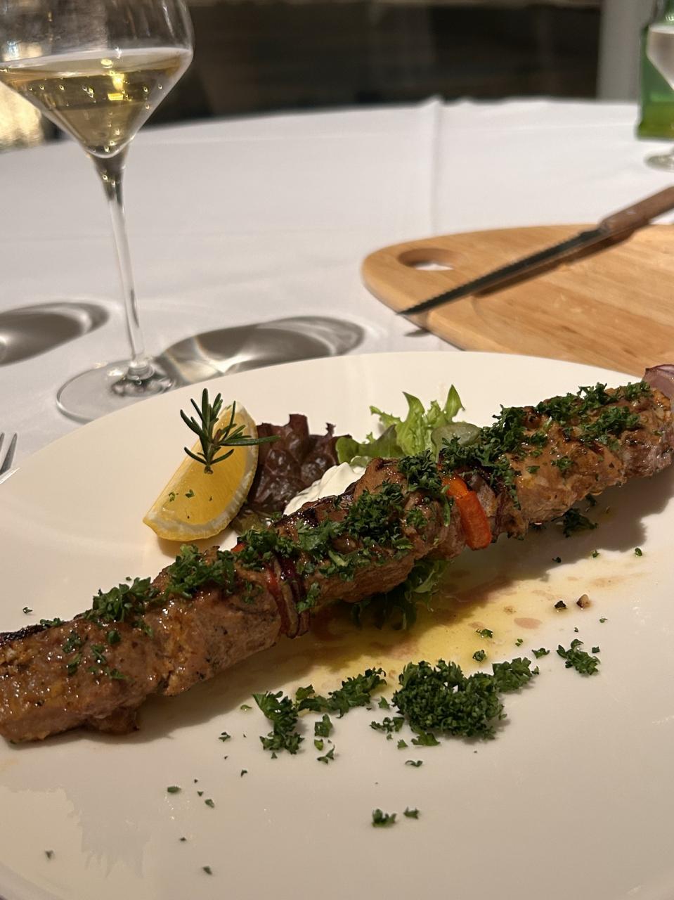 こちらは私が頼んだ豚のヒレ肉のスブラキ(串焼き)。