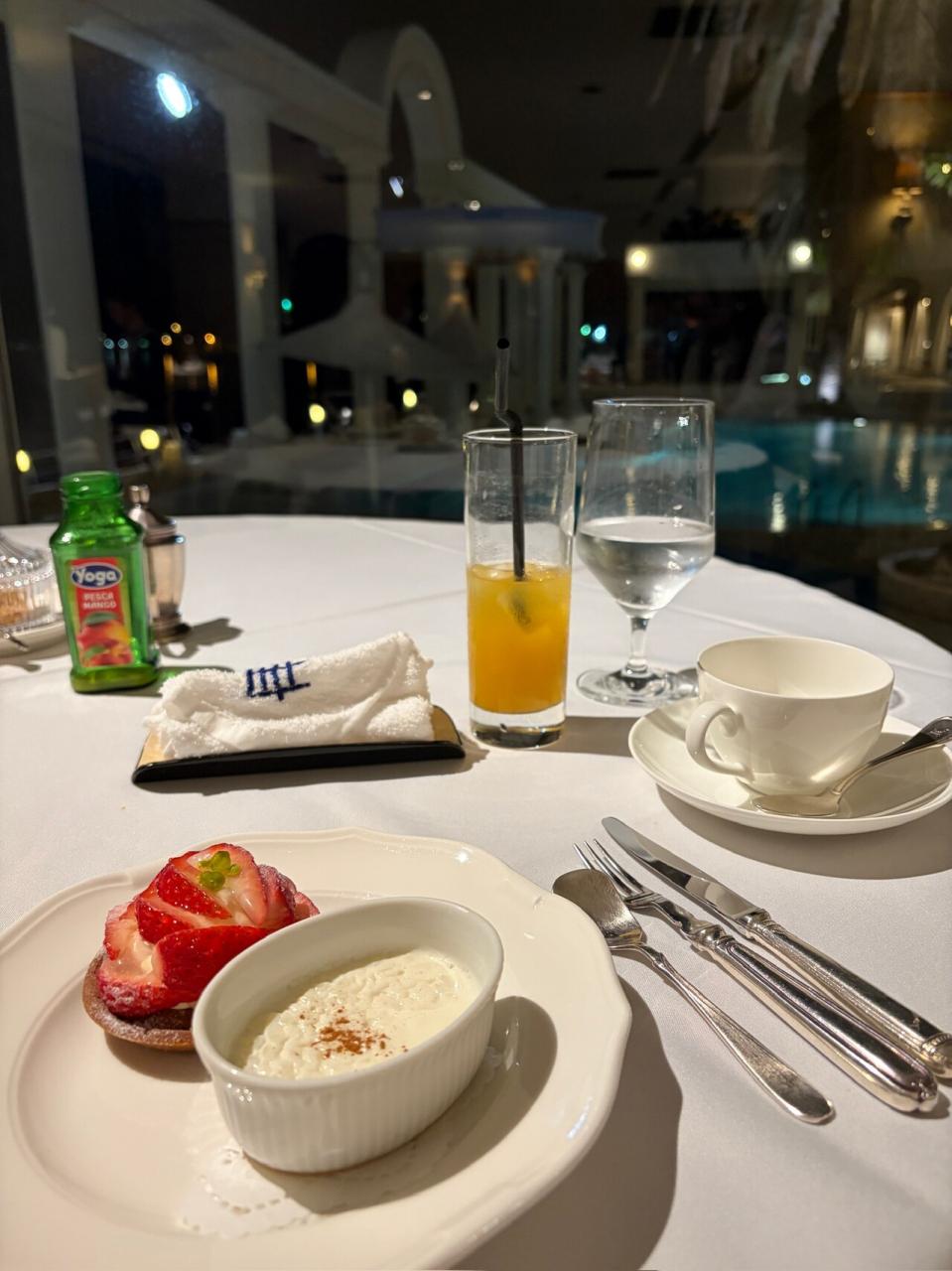 娘はイチゴタルトとギリシャのお米で作ったデザートを。