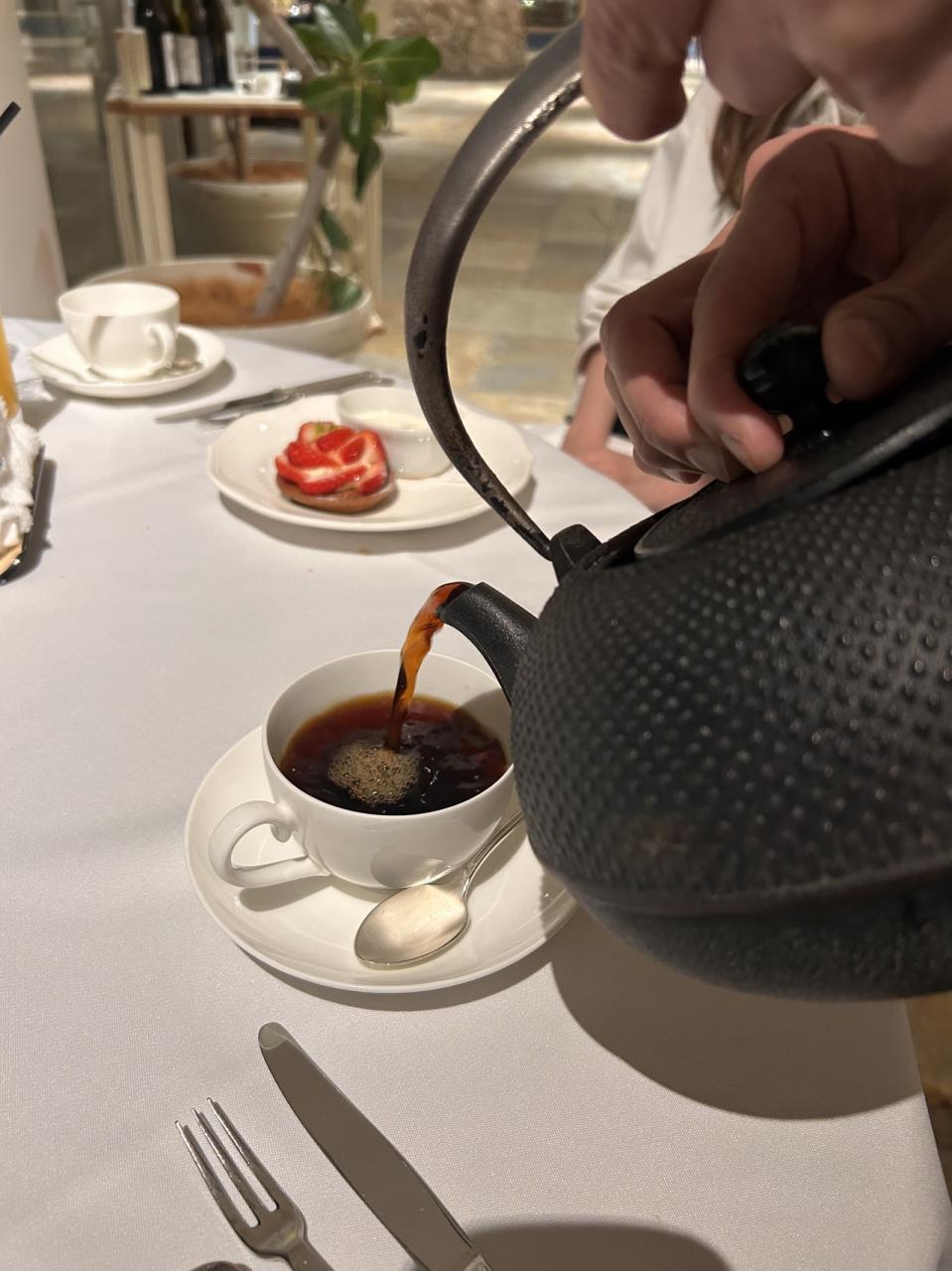 コーヒーや紅茶はこの鉄瓶でサーブされます。
