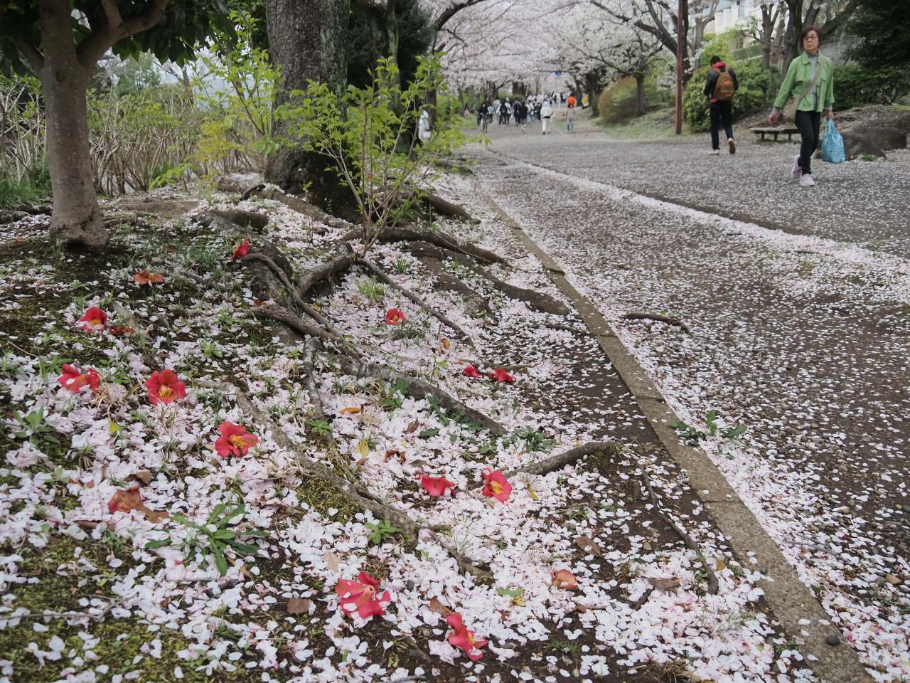 昨日の嵐で花びらが散ってますね -