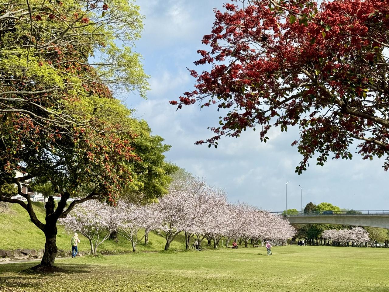 例年のように葉桜にはなっていない、鹿児島は暖かいので開花スイッチが入りにくく、なかなか一斉に咲きませんが、今年はラッキーな年のようです