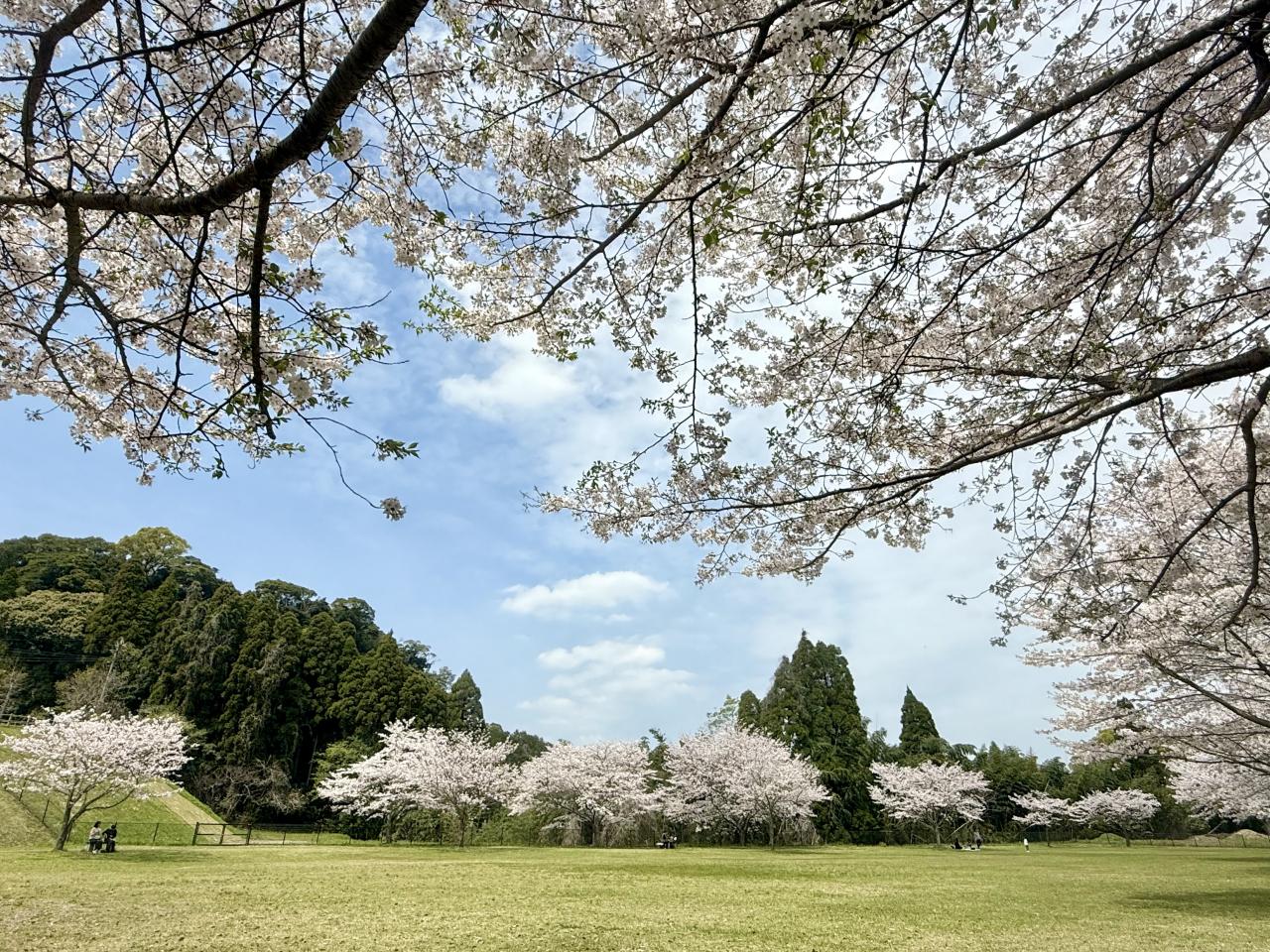 4月3日仕事が早く終わり、2日続けての花見は国分城山公園へ、下の駐車場横の広場は満開