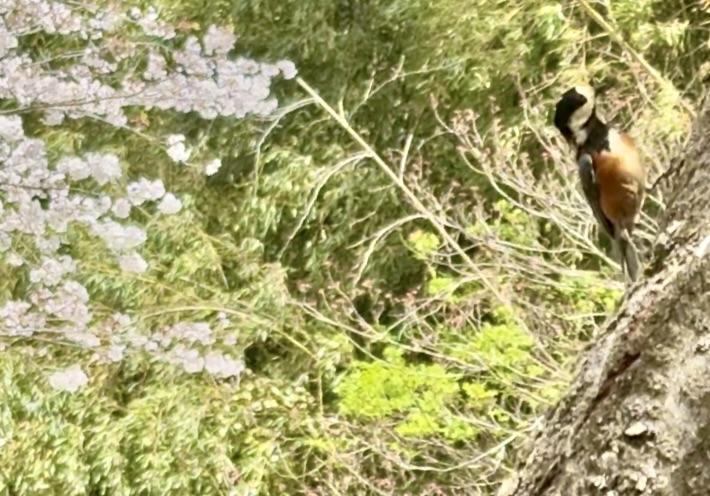人懐っこいヤマガラが近くにやってきました(動画からのスクショで画像が不鮮明です、動画をご覧下さい)
