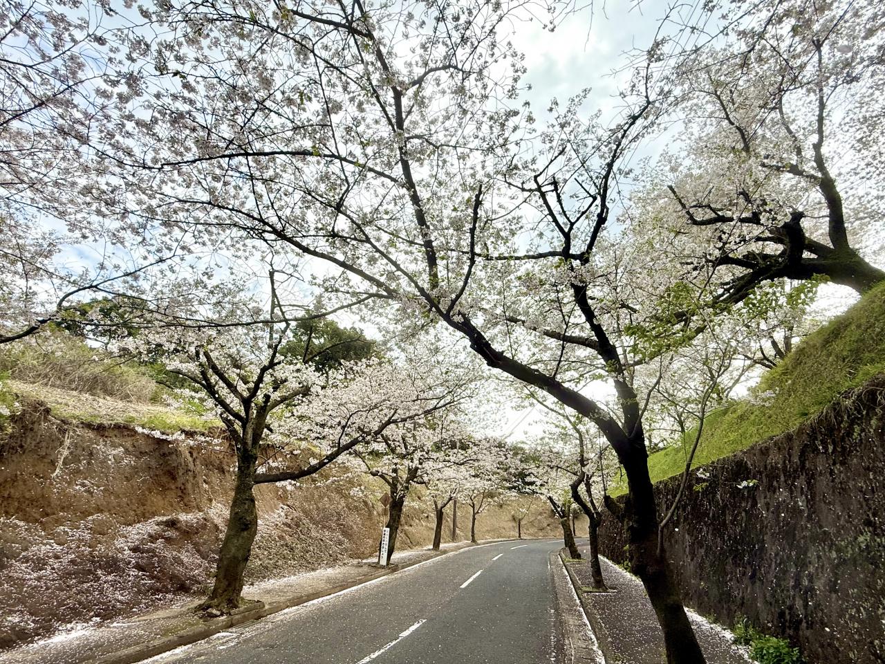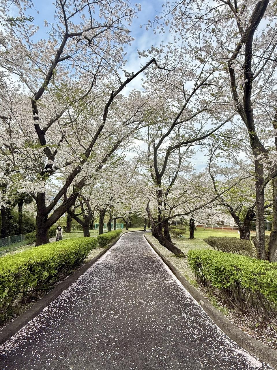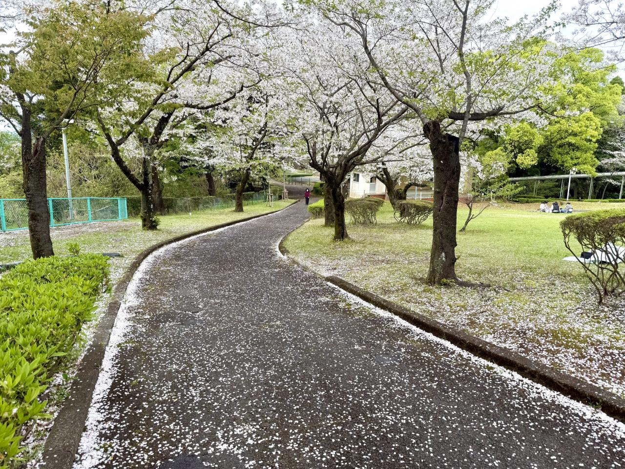 歩いて上の公園へ、この坂道はだいぶ散ってスカスカしてます、一番上は葉桜状態でした