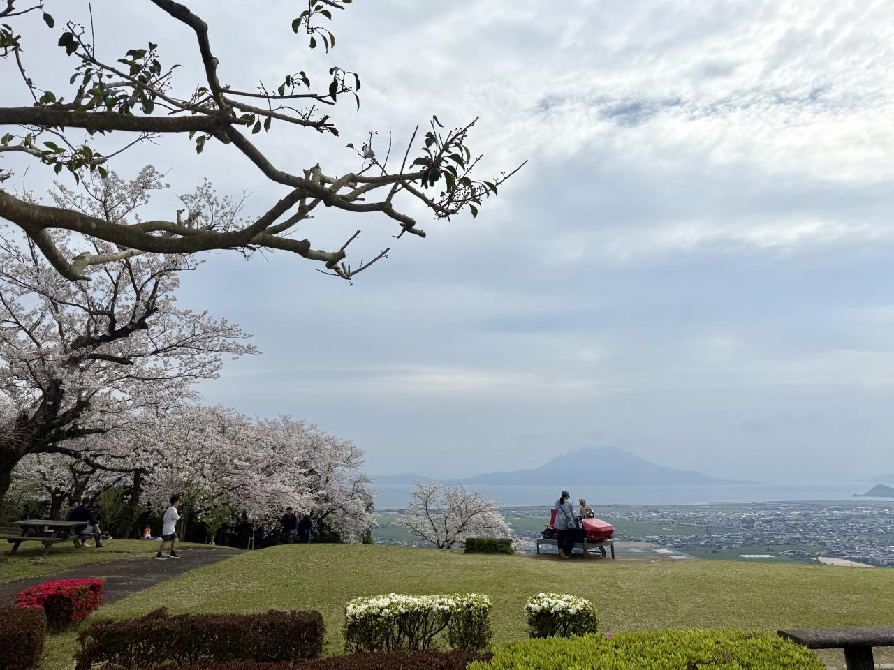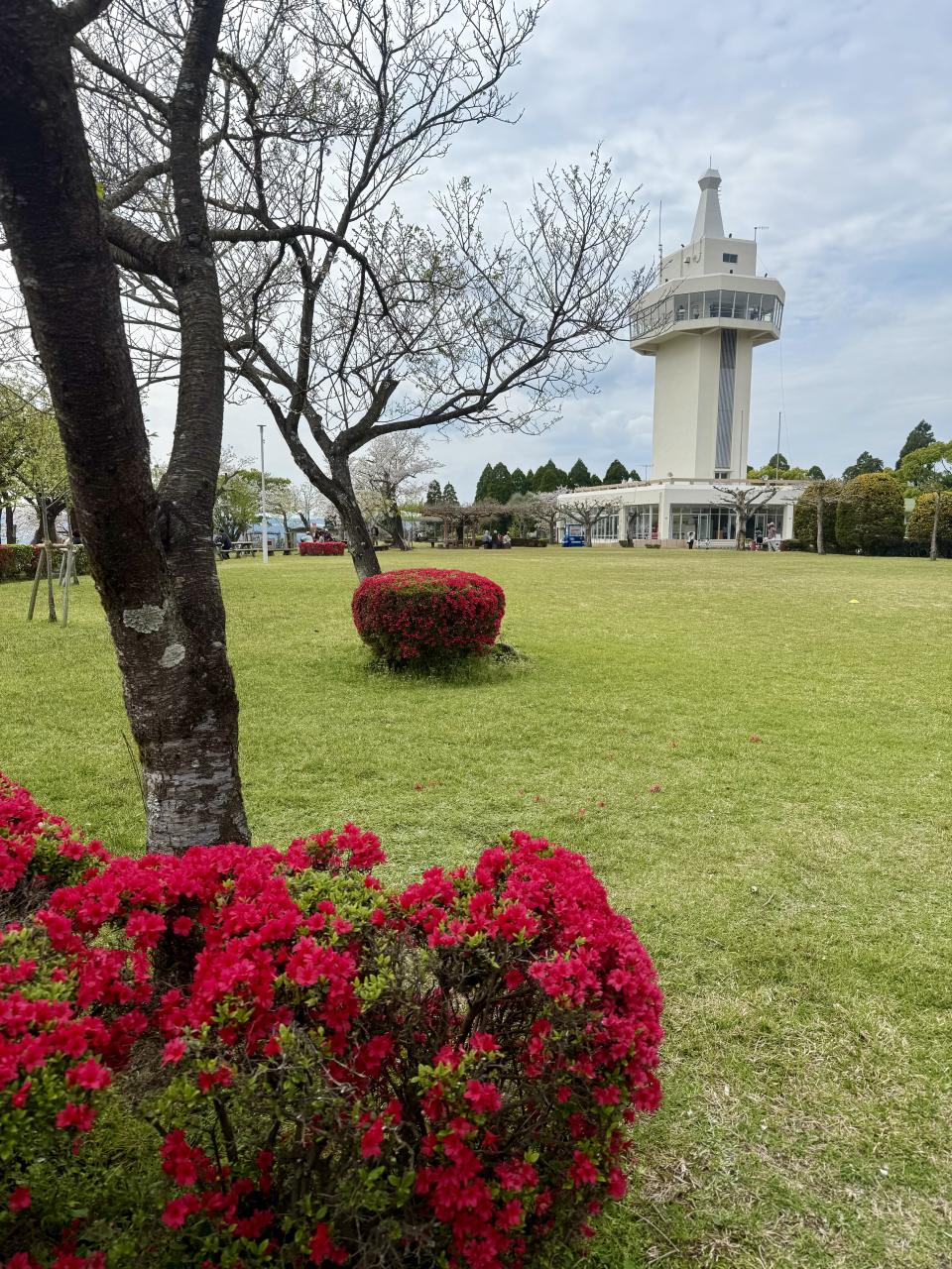 展望台周辺はツツジが咲き始め、ここではそうなると桜は散ります
