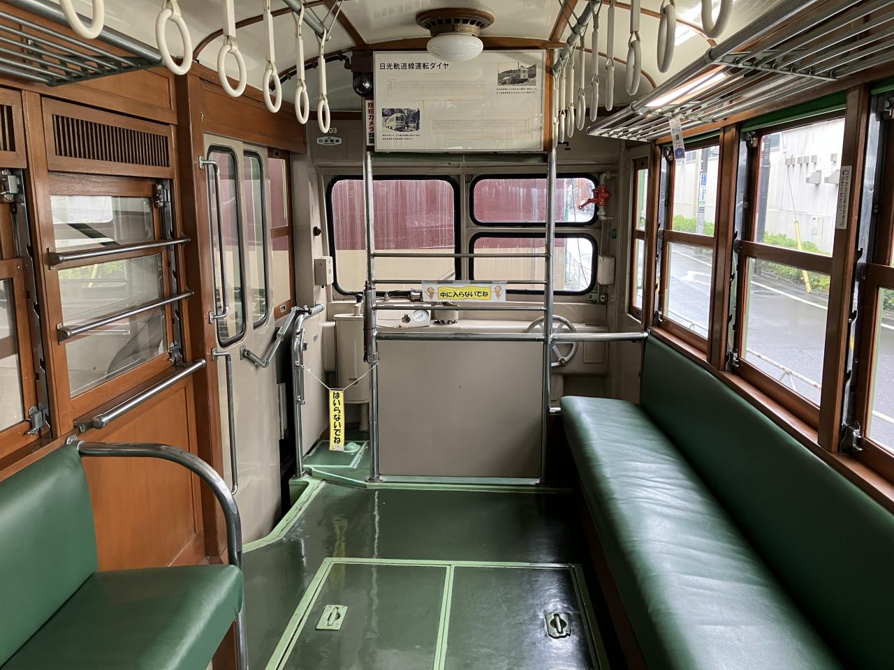 日光市内を走っていた路面電車「東武日光軌道線」の車内