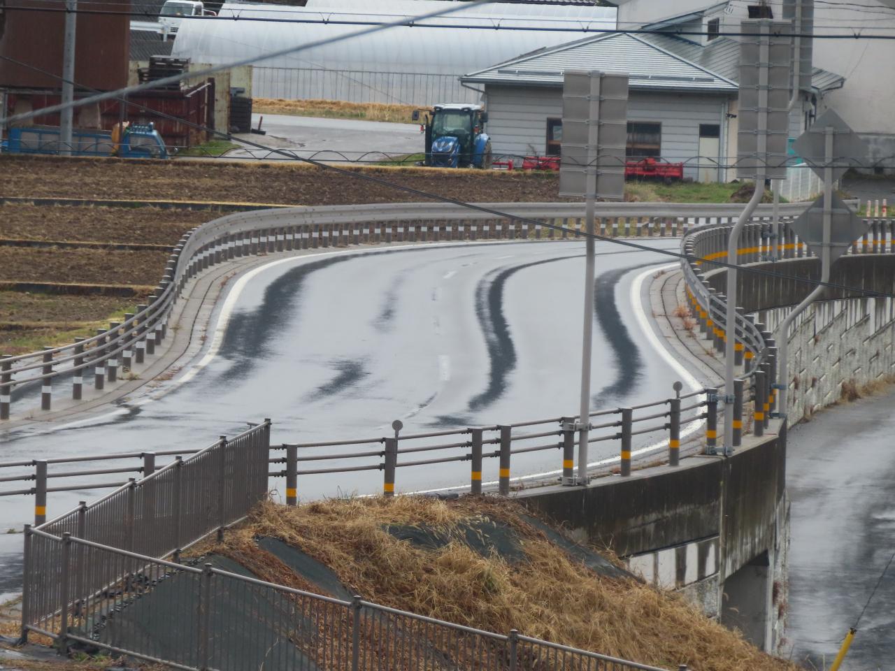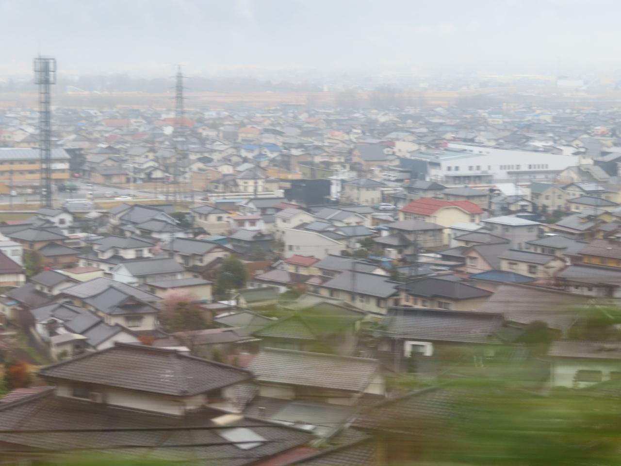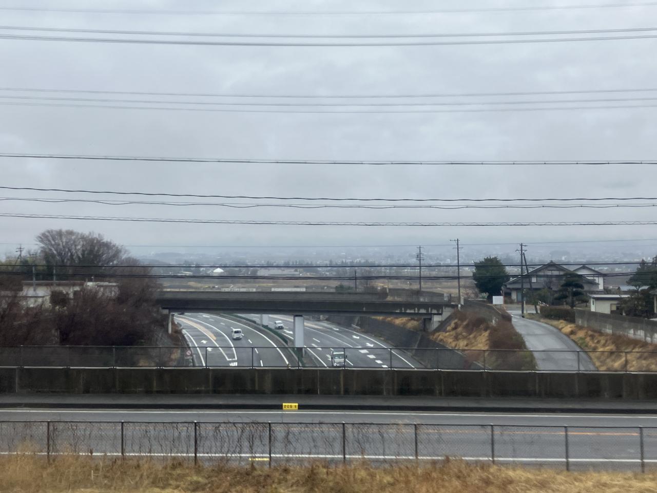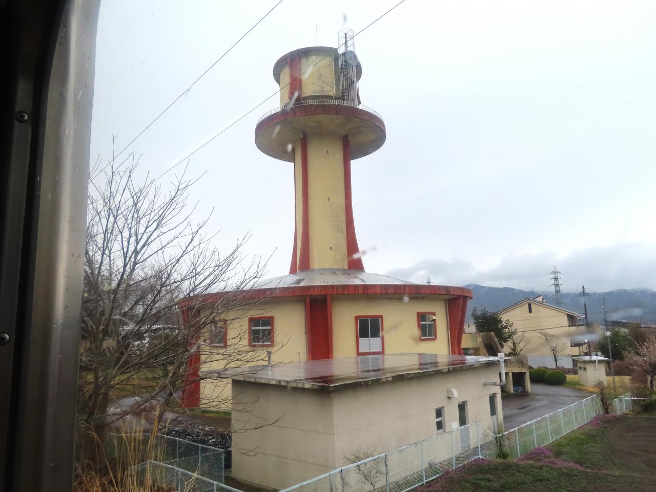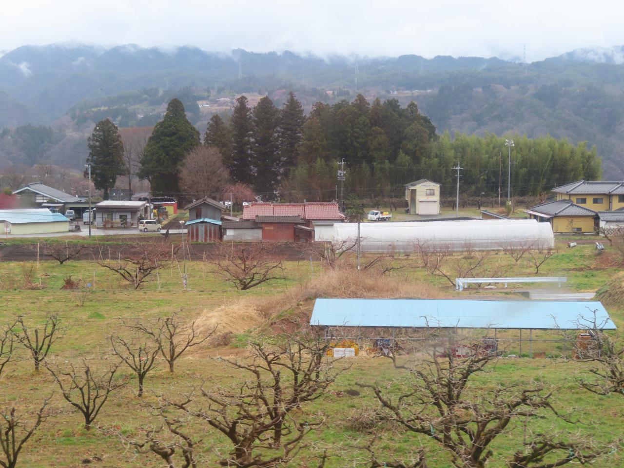07:49「明科駅」近く。あいにくの天気です。美しい早春の北アルプス連邦は拝めませんでした。