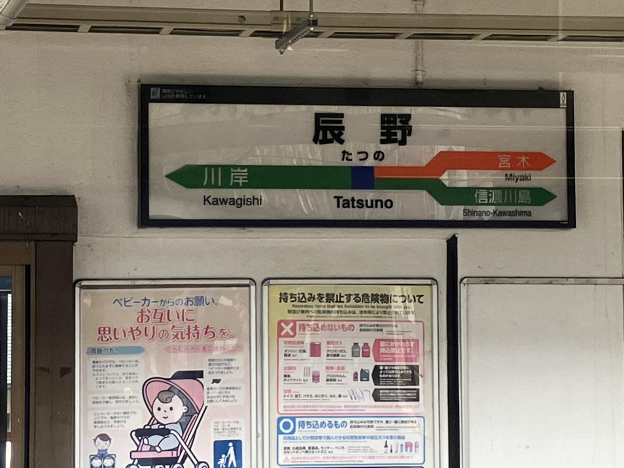08:58「辰野駅」ここから南はJR東海です。
