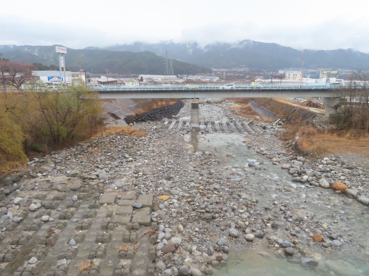 天竜川に合流してゆく支流の下流側の景色。