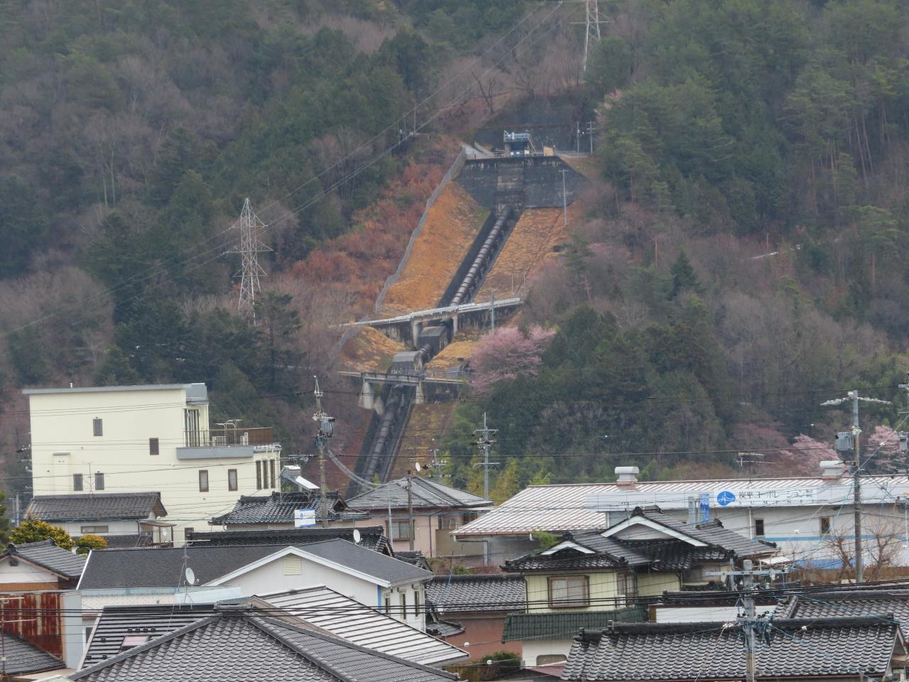 駅から天竜川対岸に見えたもの。「長野県企業局小渋第2発電所」だと思われます。
