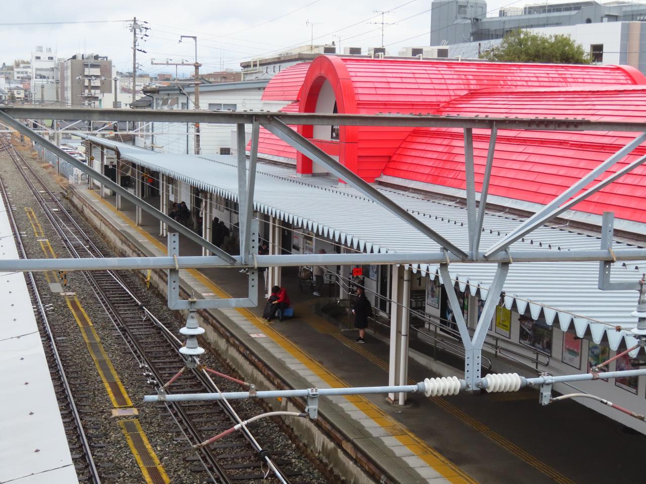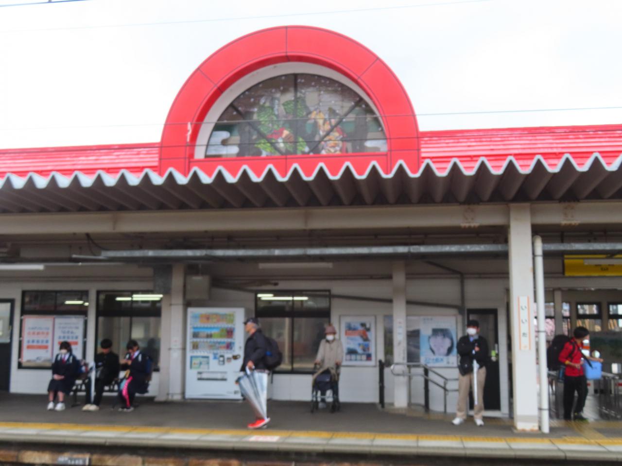 駅舎正面。赤が鮮やかでいいですね。