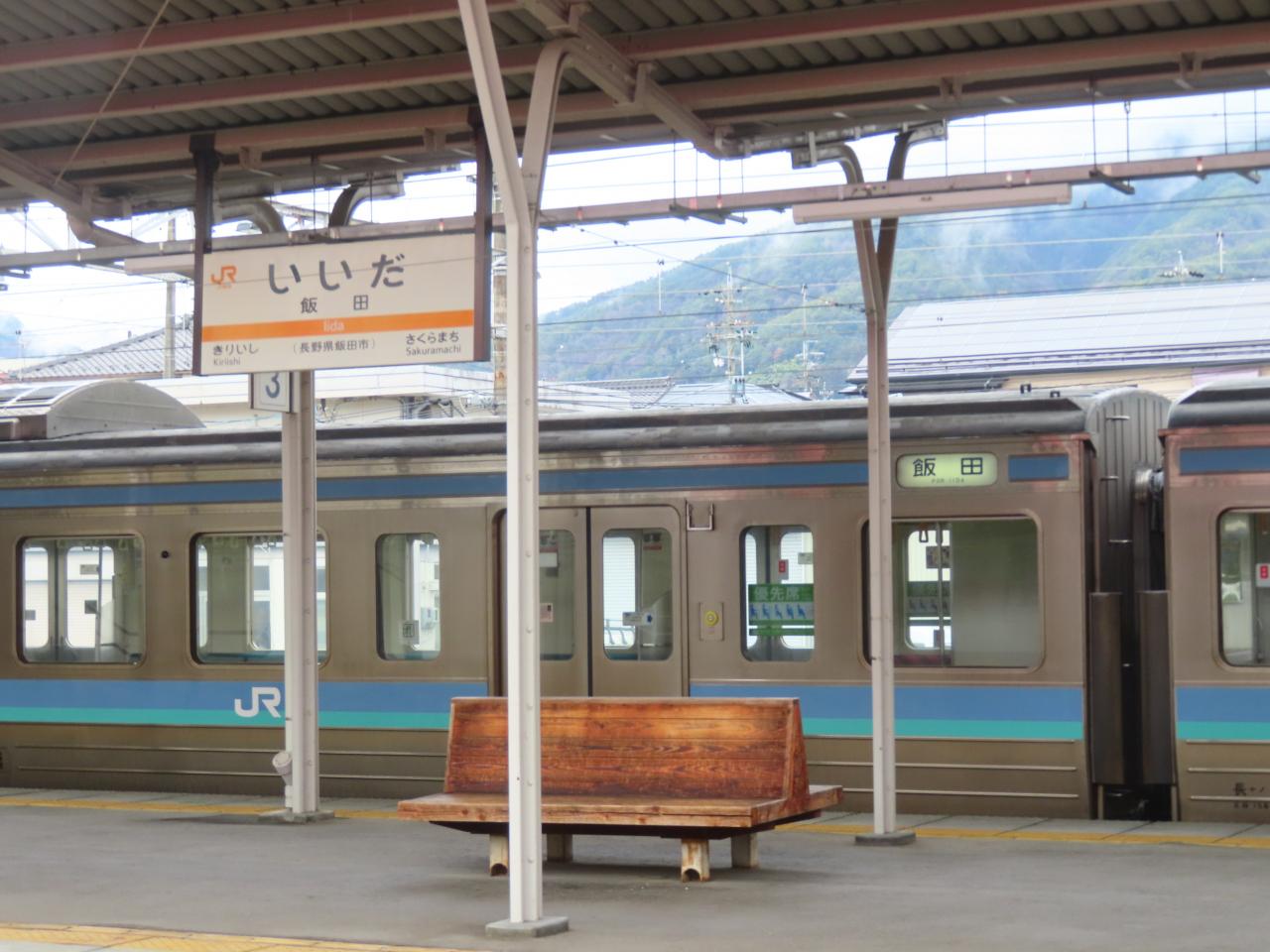08:44発の飯田行きにチェンジです。この電車は長野を06:31に出ていて岡谷に08:22に着いていました。朝食のためにややこしくなりましたが、ここで合流(笑)
