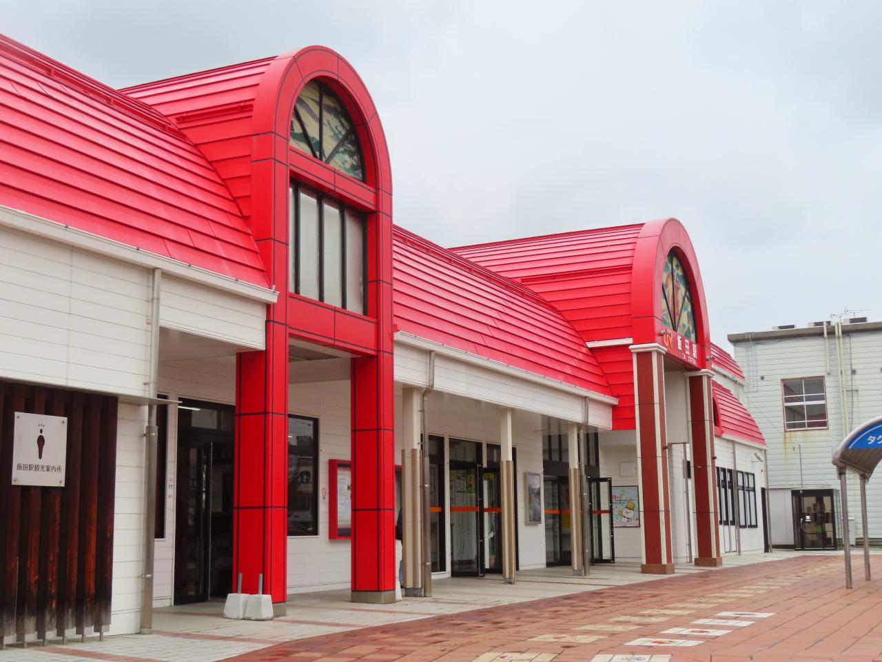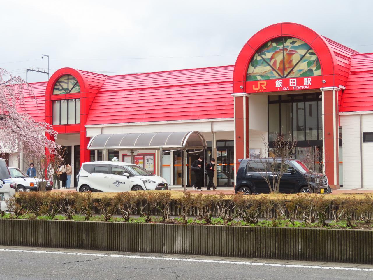 11:13、終点「飯田駅」に到着。赤くてかわいらしい駅舎です。名産のりんごの赤なんですね。