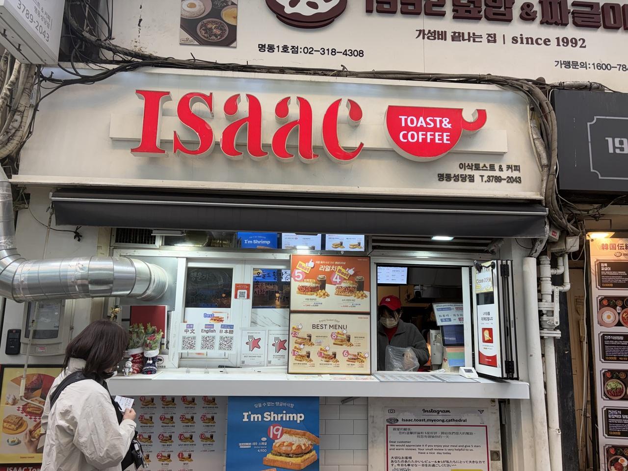 4時にランチ、「Isaacトースト明洞聖堂店」急いでトーストを食べます!