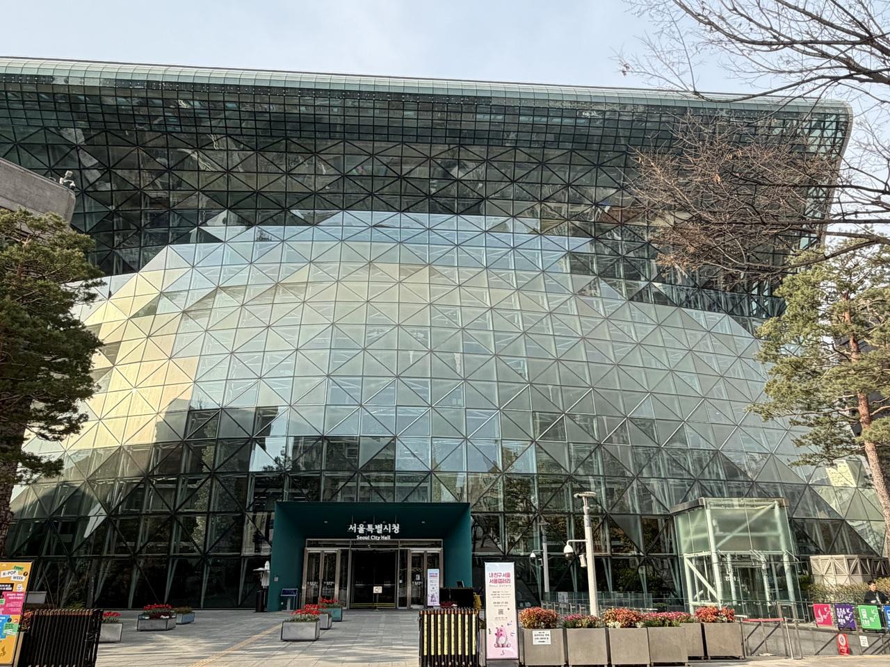 すぐ後ろにはソウル支庁。その形状から「ツナミ」とも呼ばれています。確かに…。