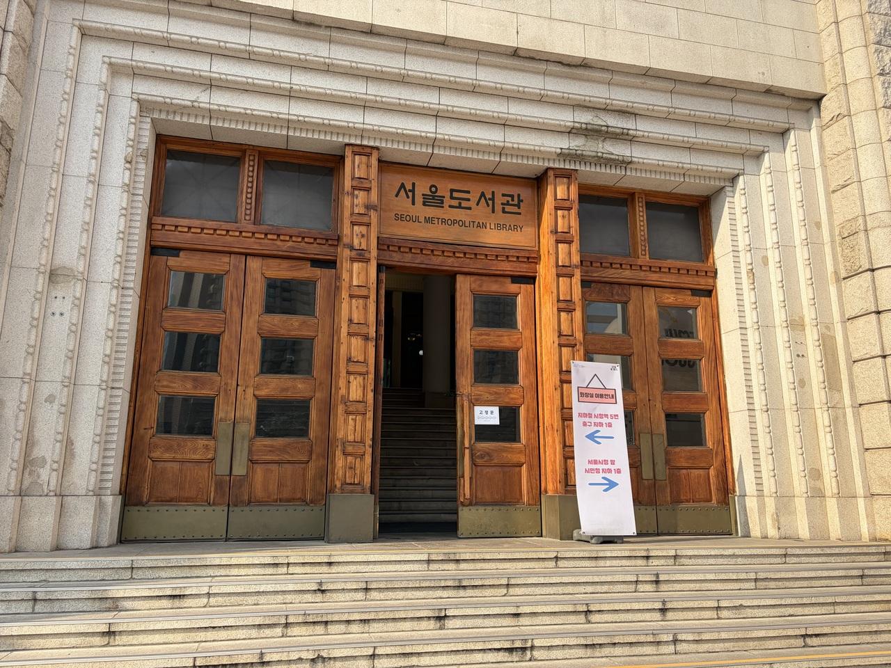 明洞から歩いて、今回の旅の目的地の一つ「ソウル図書館」に到着。