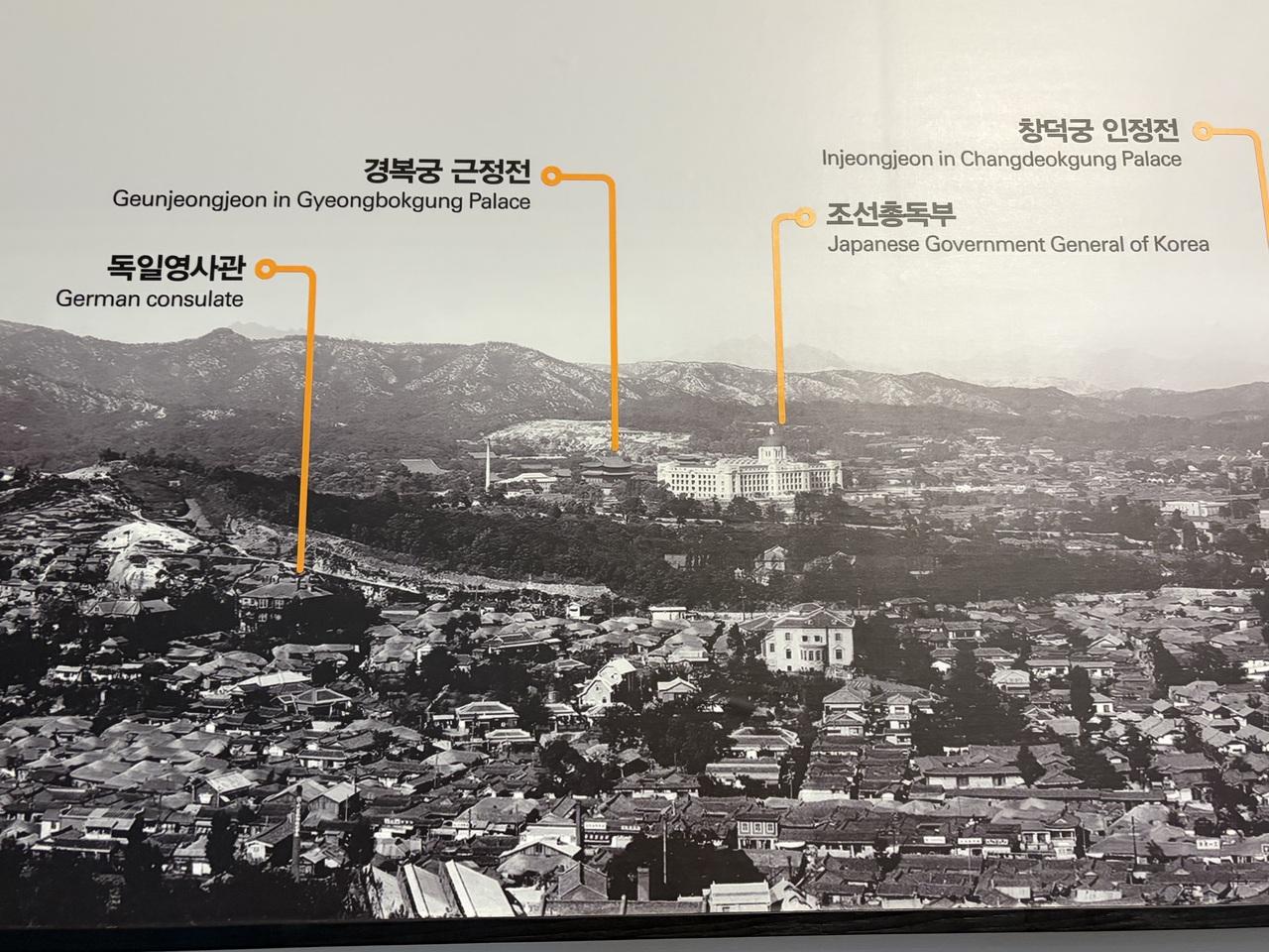 1F、2Fは図書室ですが、3Fに旧庁舎の資料展示があります。1910年から1945年まで韓国は日本統治時代(韓国では日帝強占期)でした。その時代のソウルの景色を写した大きなパネルがあります。これが見たかった!