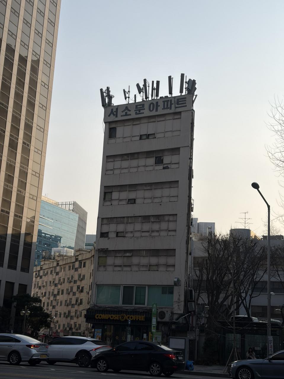 これはインパクト大。「ソソムンアパート」です。1971年竣工。