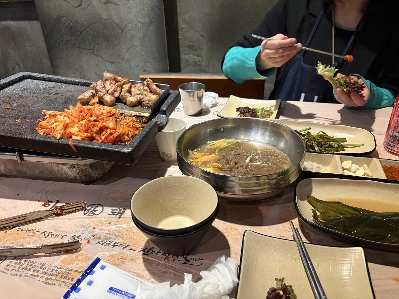 いつもの焼き肉屋さん。「河南デジチッ」モクサルとサムギョプサルと冷麺を食べましたやっぱり冷麺美味しいわあ。
