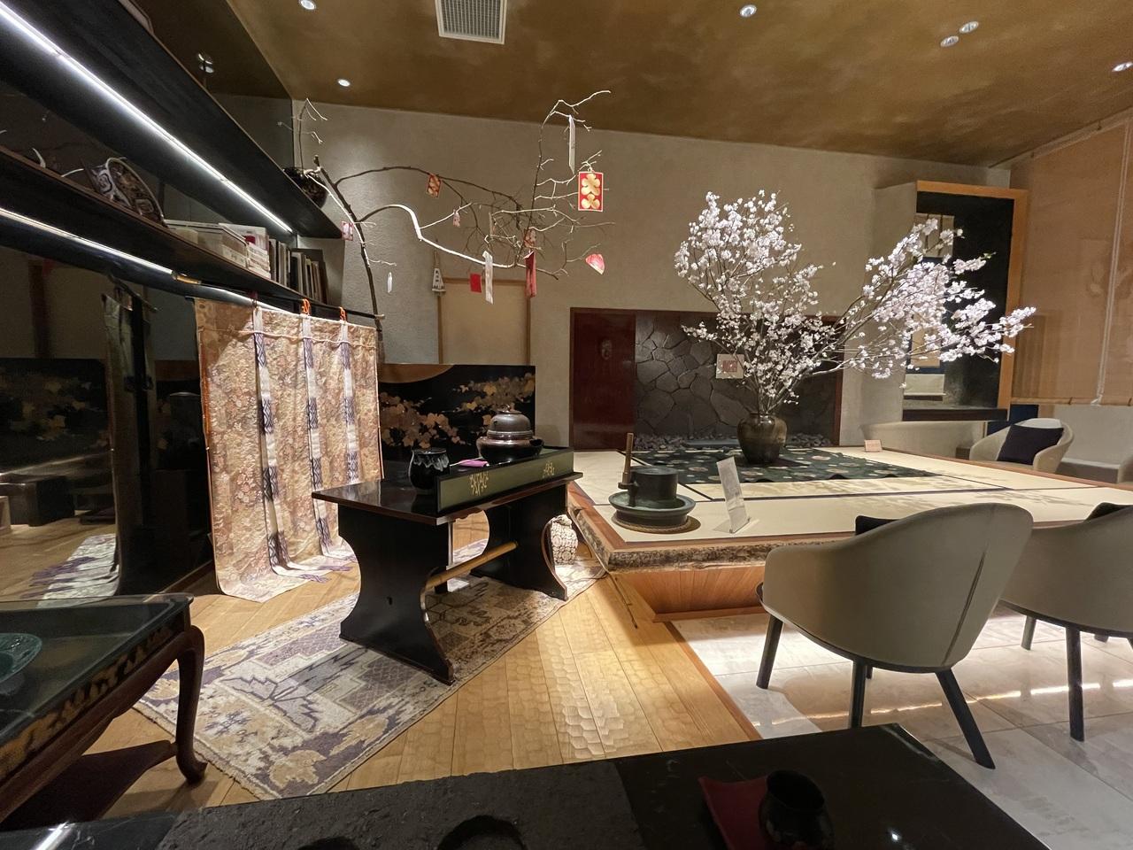 この時期は、畳の中心に置かれた大きな壺に桜が飾られていてとても素敵です。