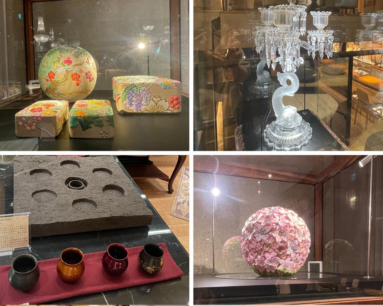 ガラスケースの中でライトアップされてまるで美術館の展示のよう。