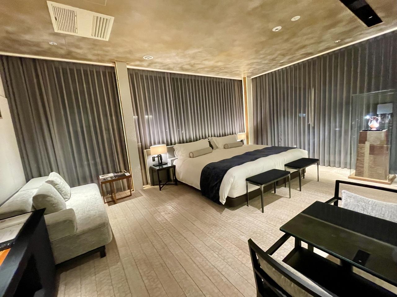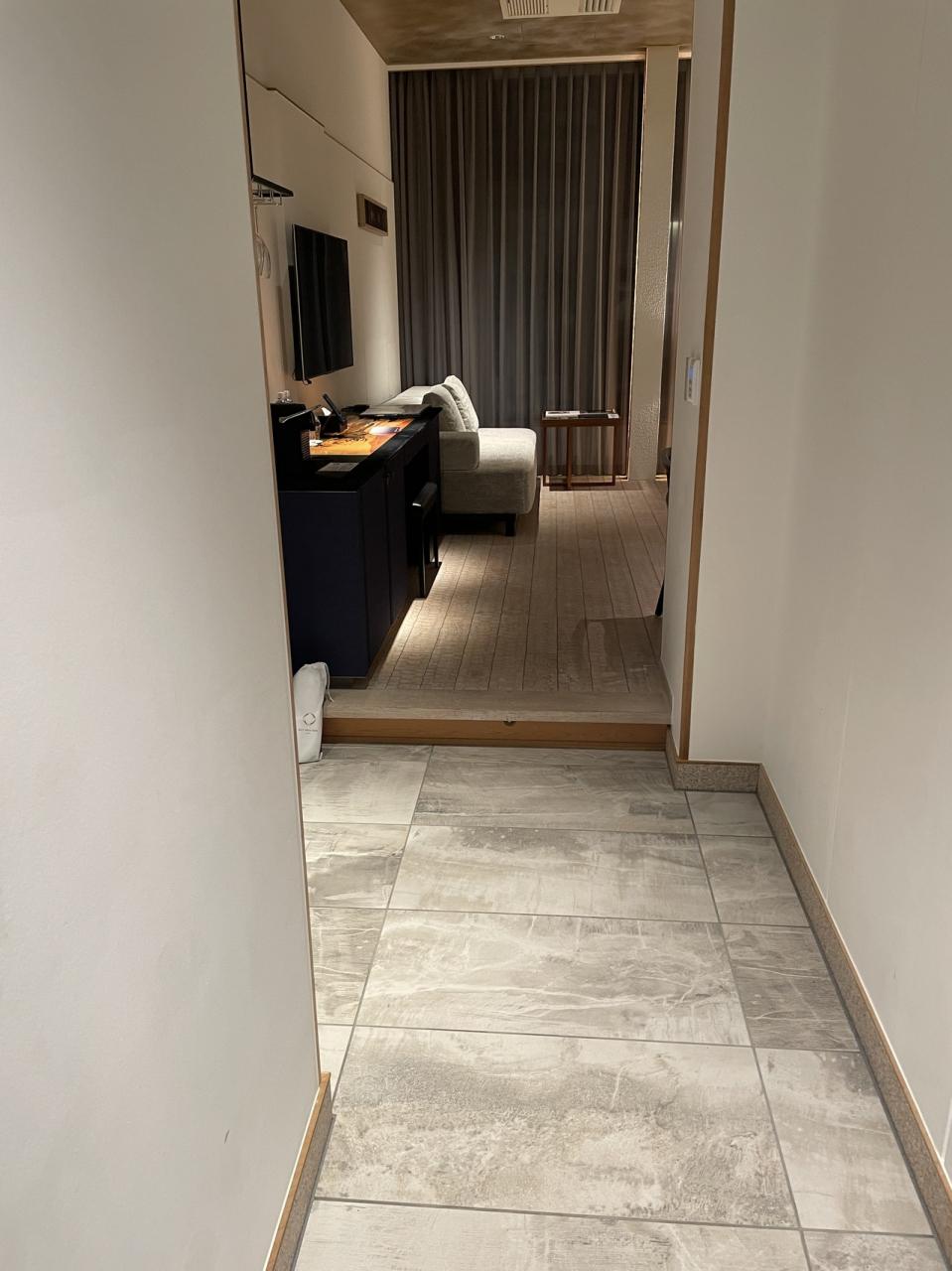私たちが選んだお部屋は、伝統的な数寄屋建築の技術である「なぐり」という仕上げが施された床が特徴で、素足で歩くと足の裏への刺激が何とも言えない気持ちよさでした。