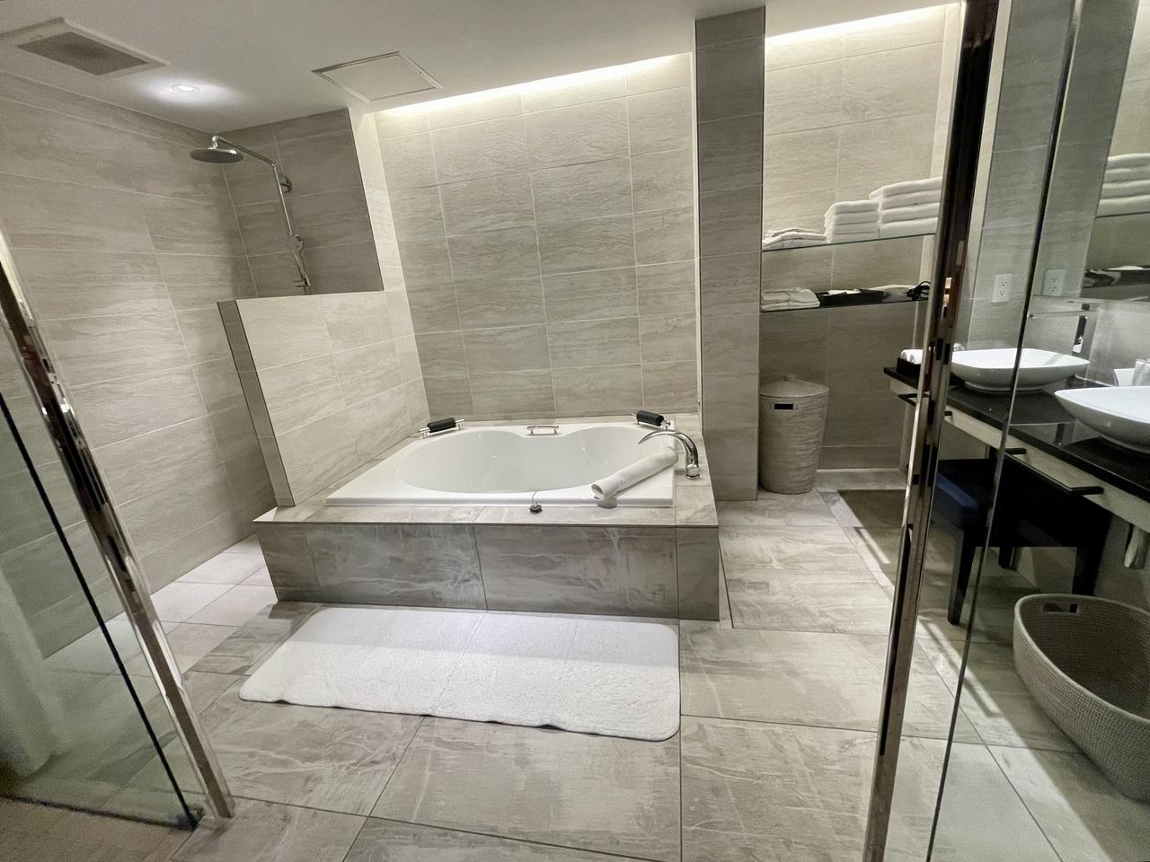 アメニティーはフランス製自然派スキンケアブランド「オムニサンス・パリ」のラインナップ、入浴剤はMIKIMOTO のもの。ゴージャス☆ -