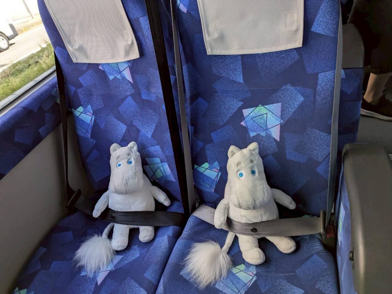 ムーミンの絵柄の可愛いバスが来ました。 -