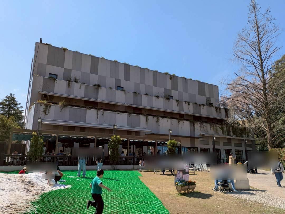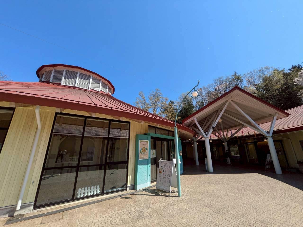 ロッジ風の建物、1Fが飲食店やお土産物屋さん、ここはまだ無料ですが近隣の親子たちの遊び場としては最適な感じです。
