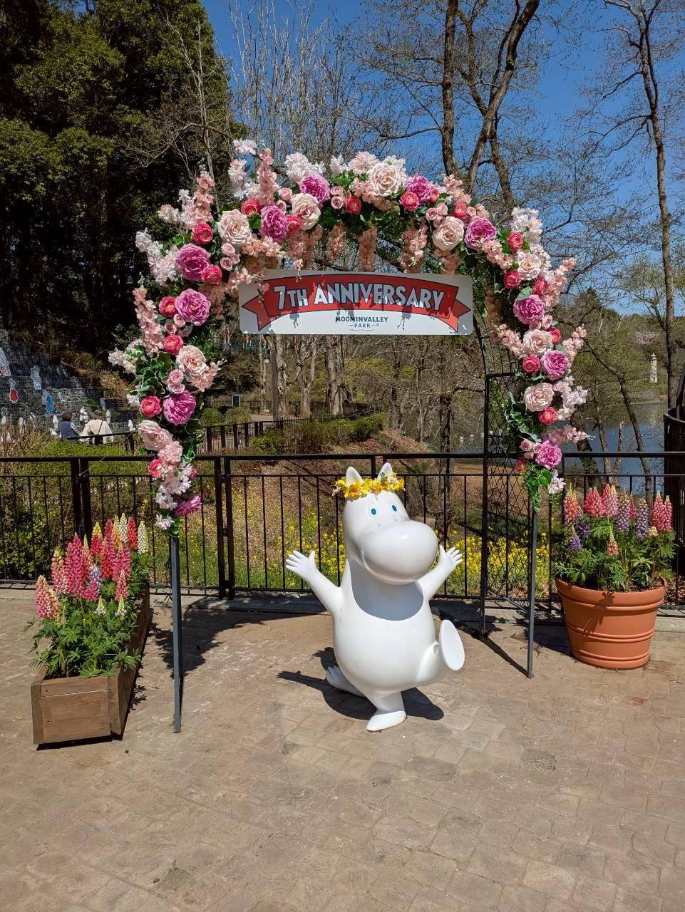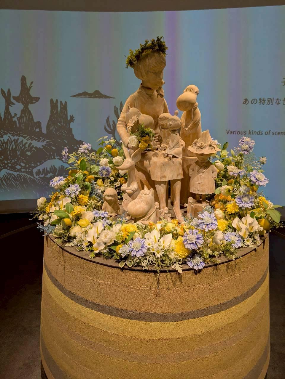 花が咲き乱れる、花冠をしたムーミンが迎えてくれます。