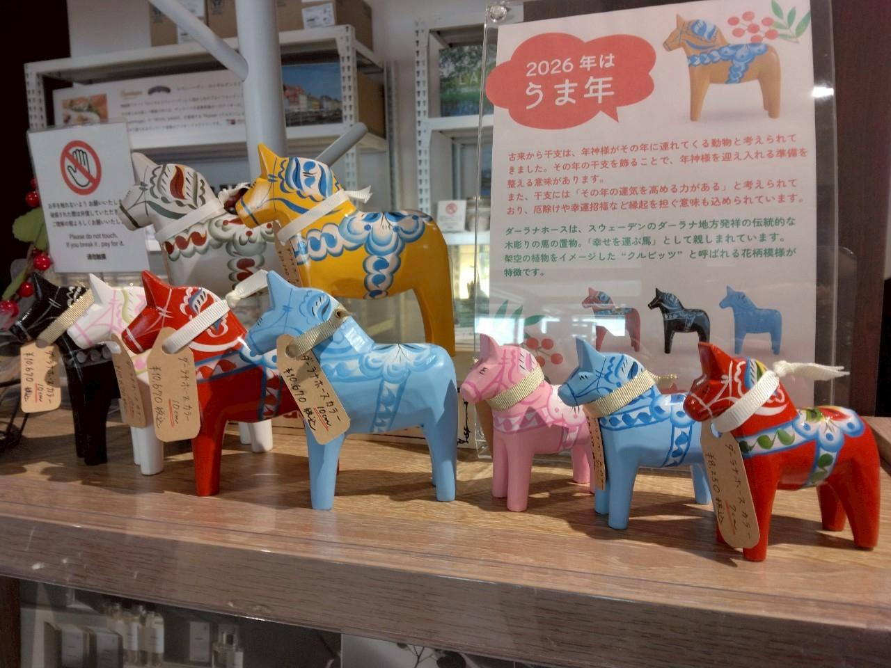 メッツアヴィレッジの北欧雑貨の店で、スウェーデンのダーラナホースの置物が飾ってありました。