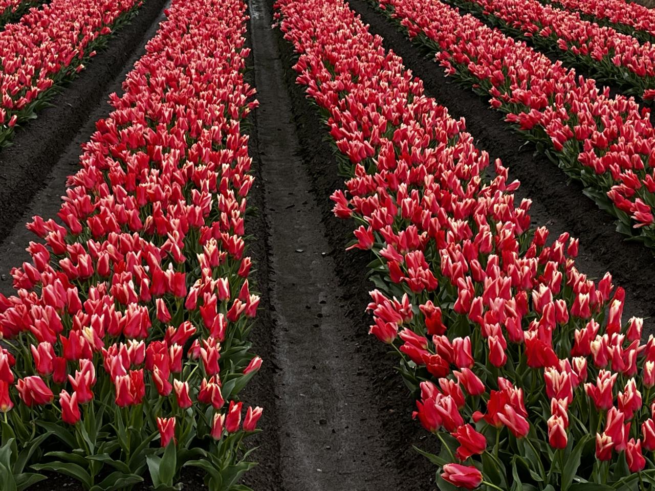 ホームページにはチューリップがたくさん植えられているイメージが載っていましたが実際は部分的でした。でも一画に赤いチューリップがたくさん植えられて満開でした。