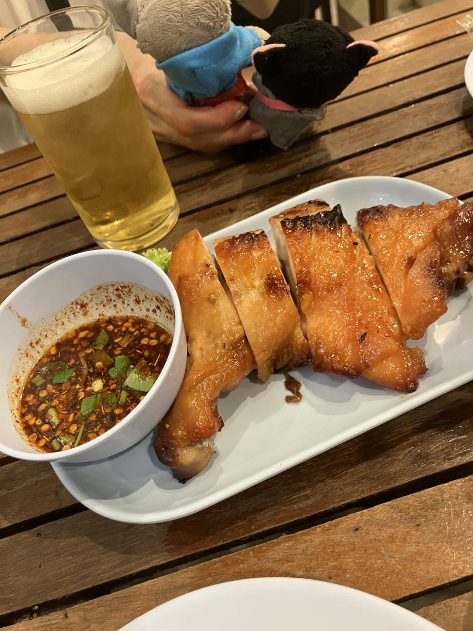 店の写真撮り忘れた でたーQR 食べたいメニューは言えるのに 英語変換も上手くできないし写真も小さくてよく見えない笑 店員さんにガイヤーンどれ?どれ?とやってもらいました -