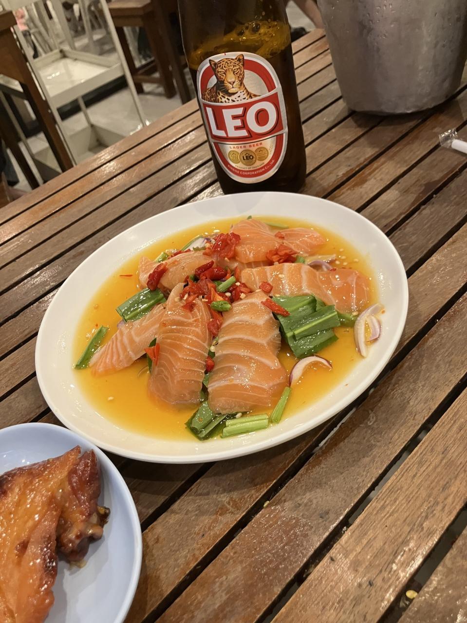 サーモンヤム コームヤーンとポテトフライもたのんでビール全部飲み切りました