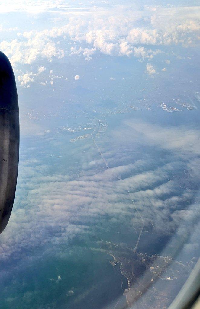 機内wifiの設定したりホットバームを食べたりしてたら富士山を見逃した。