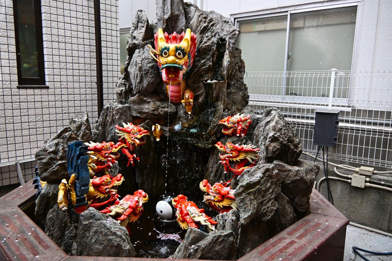 奥には龍の口から水が流れ多くの龍が取り囲み水に打たれる玉がありました。