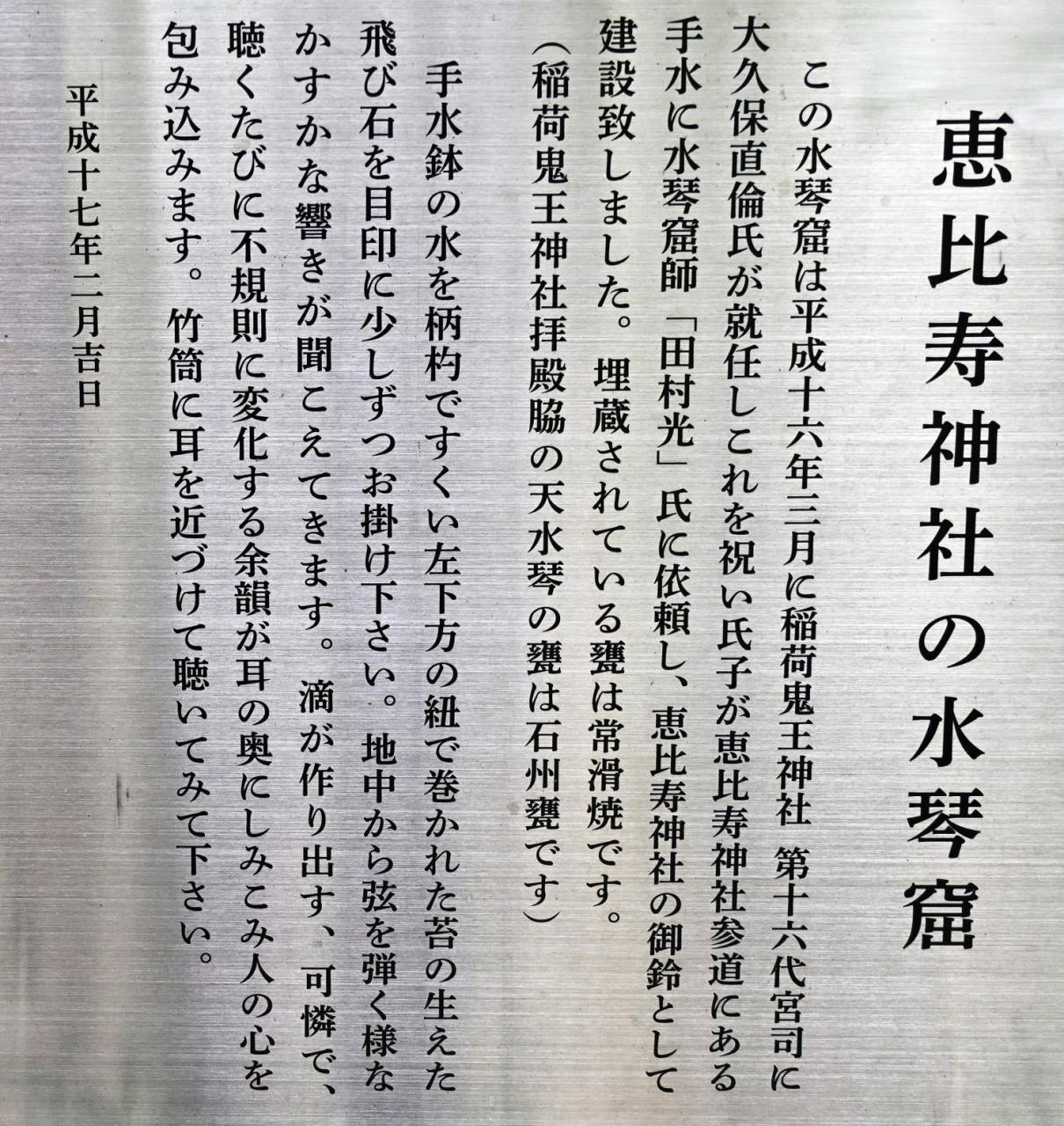 境内には「富士塚」二つの「水琴窟」「恵比寿神社」があります。