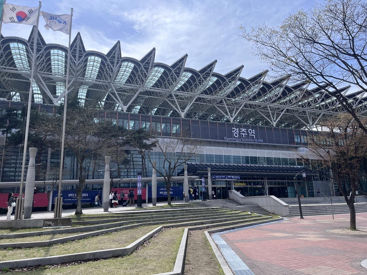 慶州のKTXの駅です。駅の周りは何もありません。慶州の街は少し離れてますが、割と都会です。バスでここまで来ました。ソウルのT money使えます。