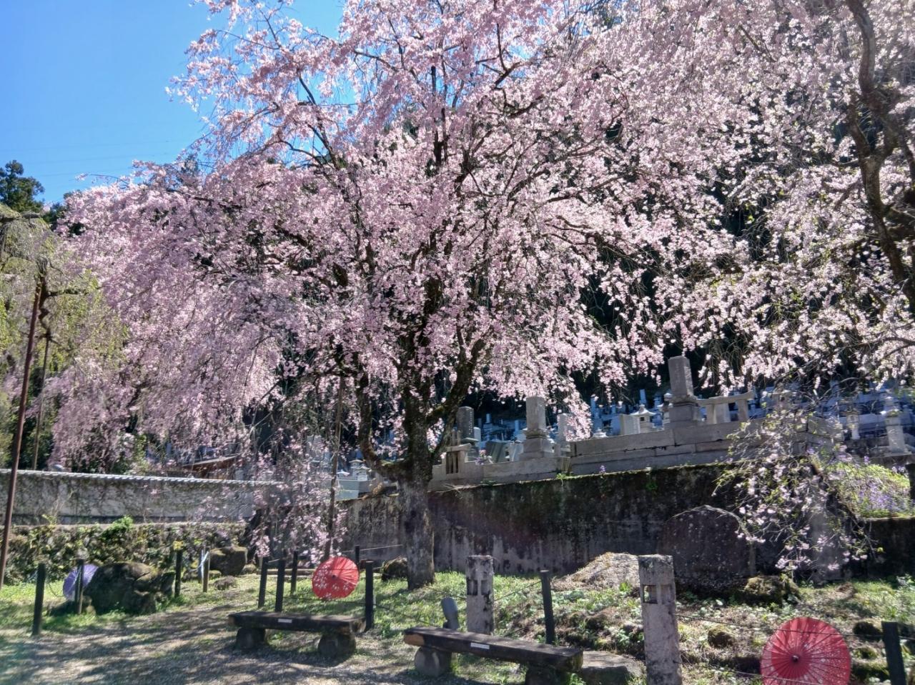 清雲寺では、早咲きのエドヒガン桜と遅咲きのベニシダレ桜の2種類のしだれ桜を楽しむことができますが、訪れた時には、既にエドヒガン桜は葉桜となっていました -