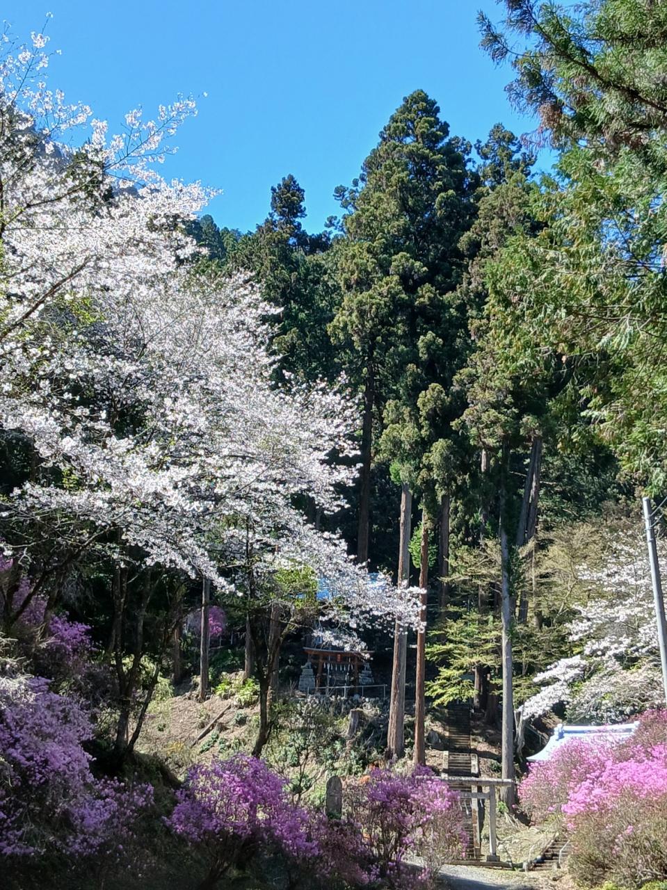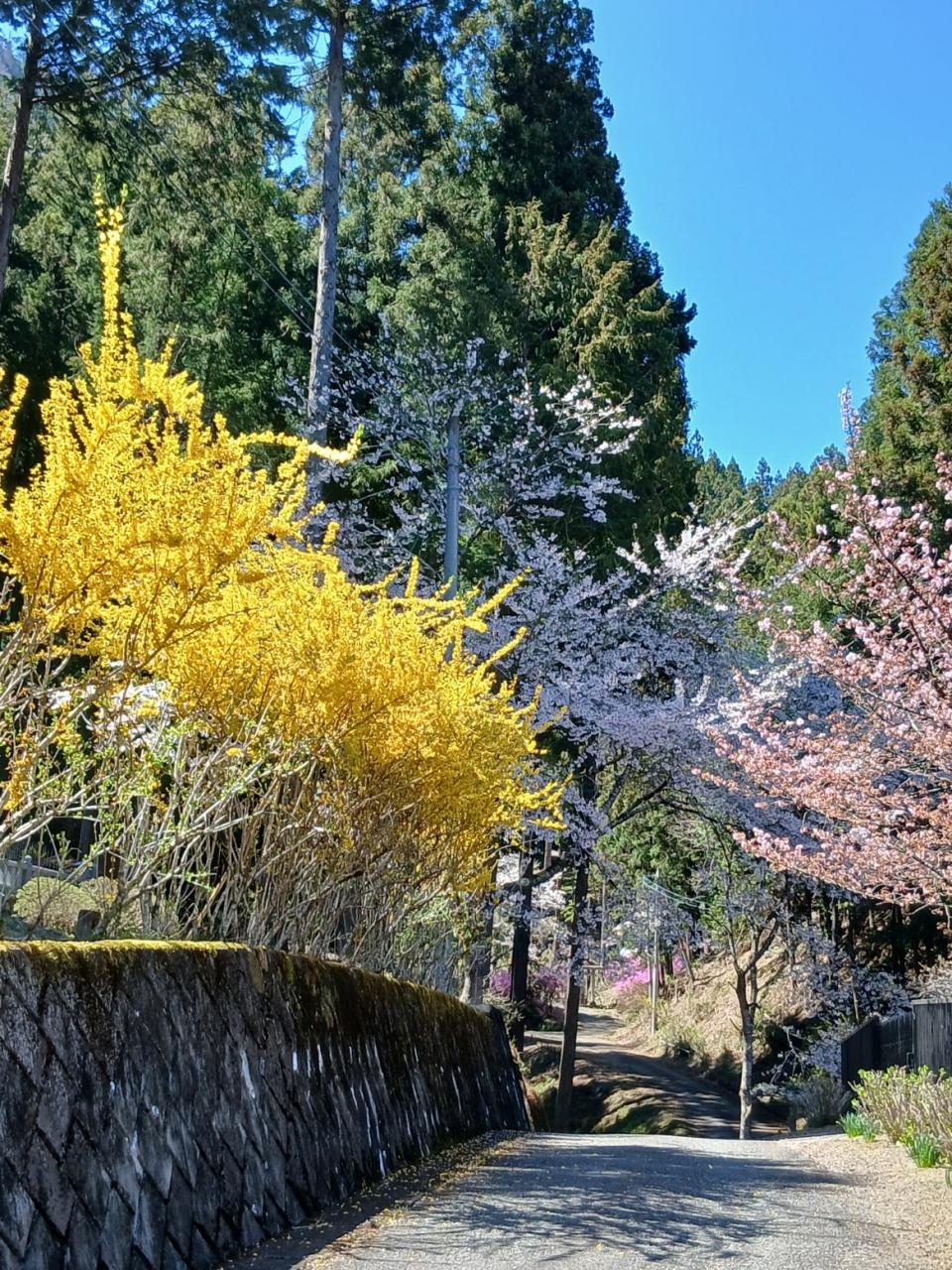 そば福前の桜や大きな山ツツジを眺めながら奥へ