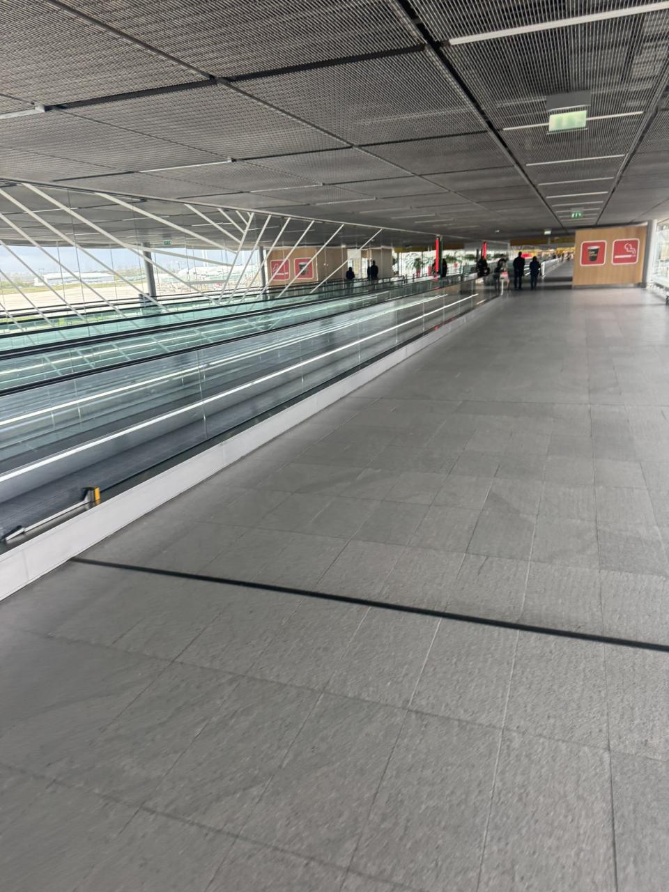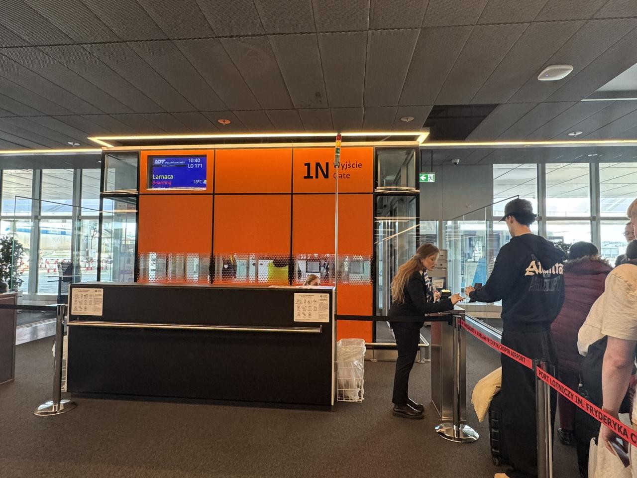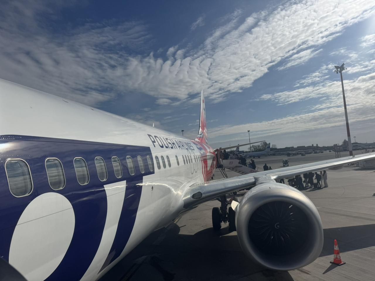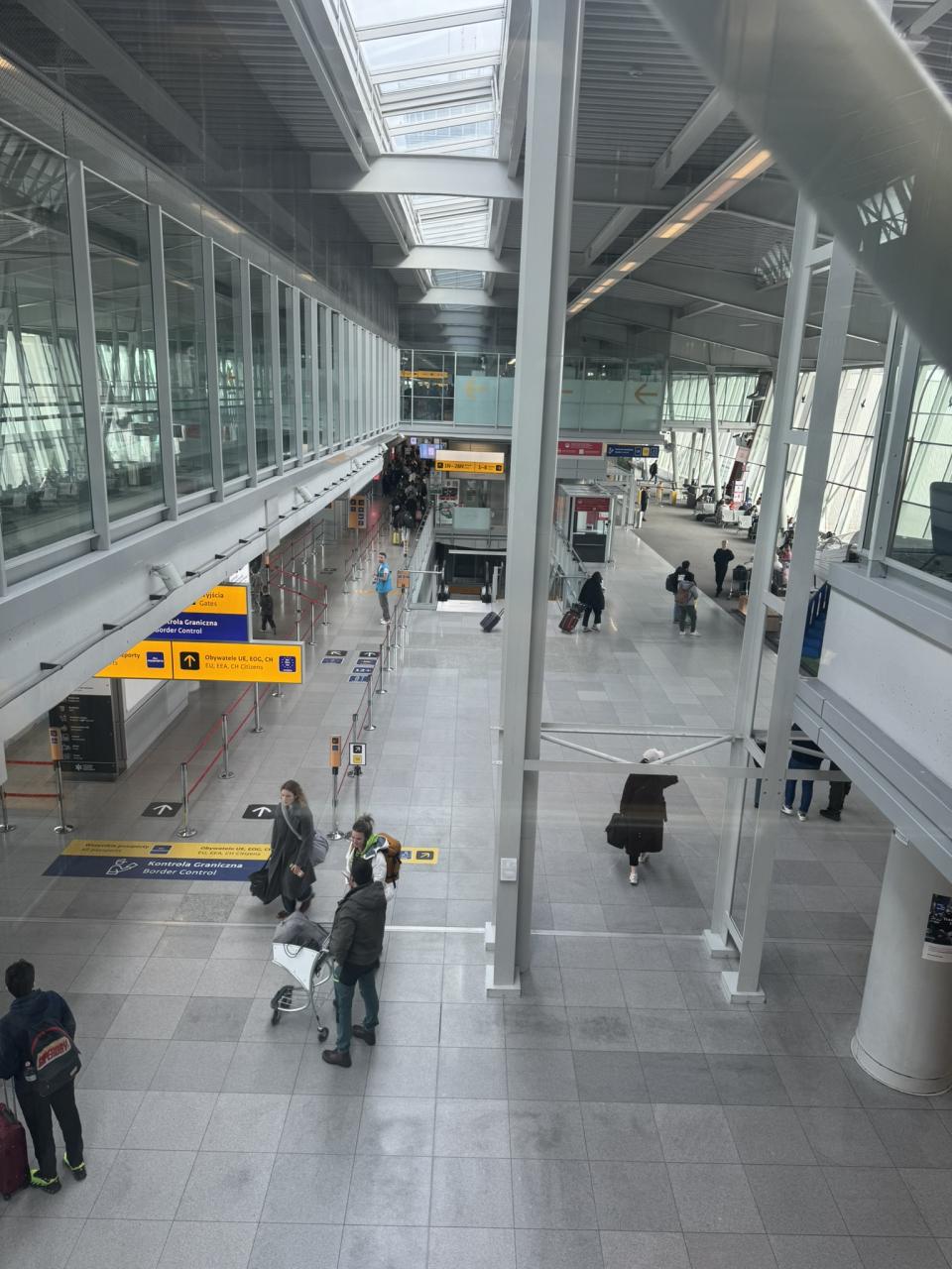 ターミナルからかなり離れました。ワルシャワ・ショパン空港広い。