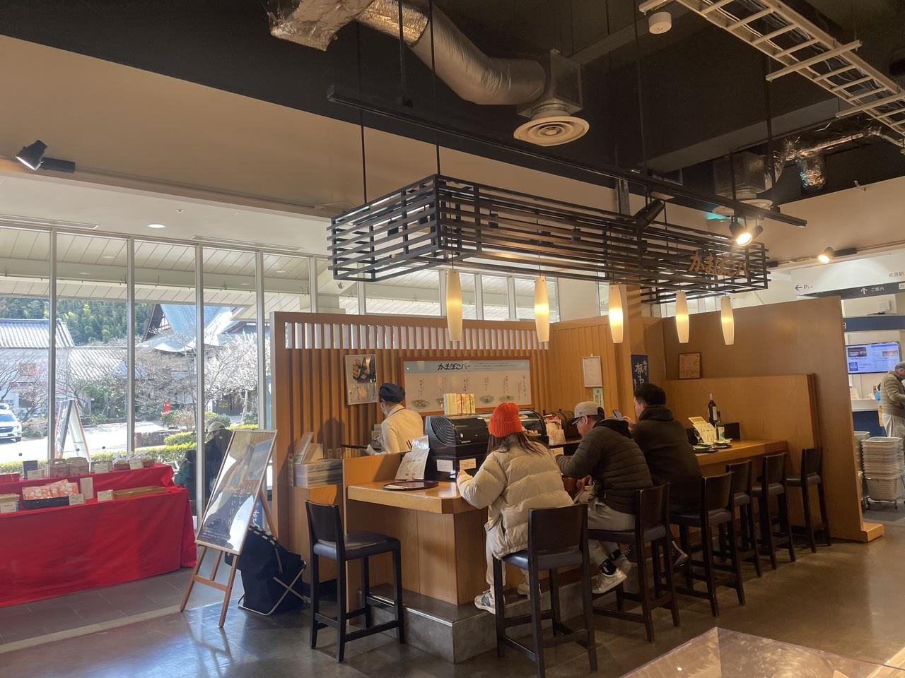 帰りのバスに乗って、休憩は「鈴廣かまぼこ江の浦店」